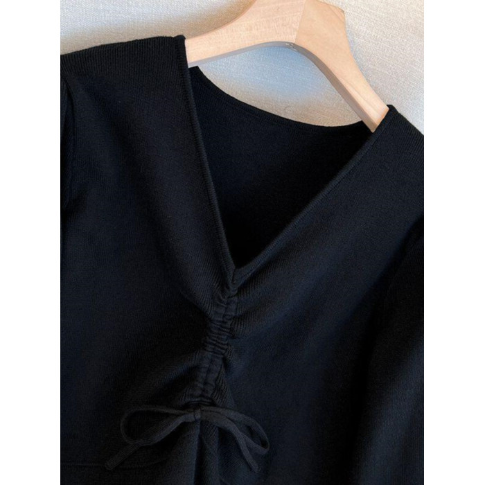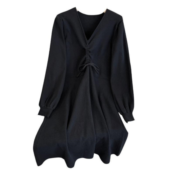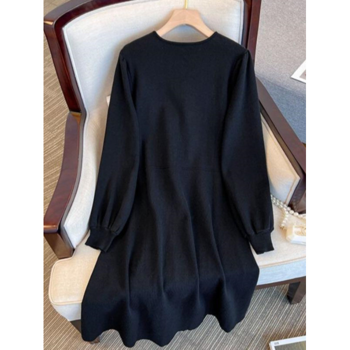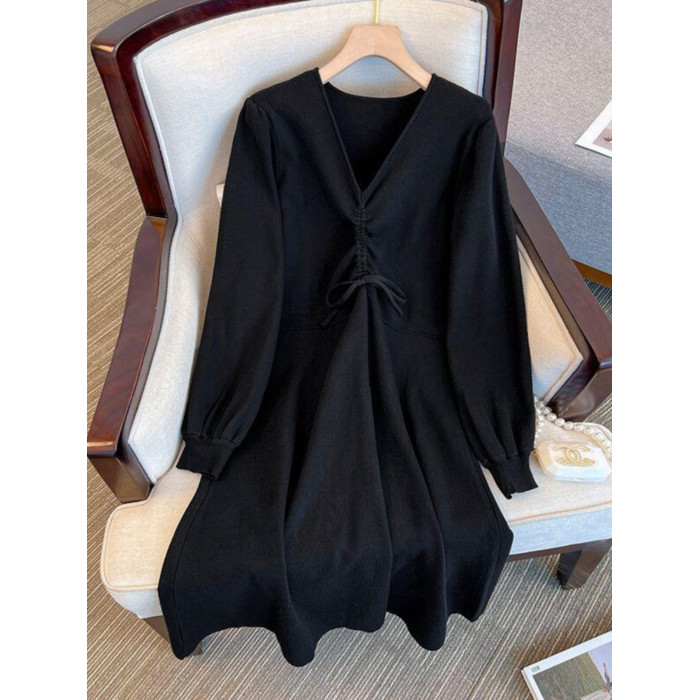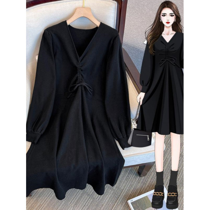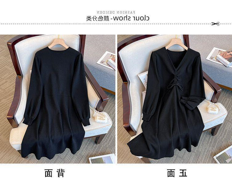 法式洋氣純色時髦高級感女胖MM300斤加大碼秋冬V領遮肉針織毛衣裙