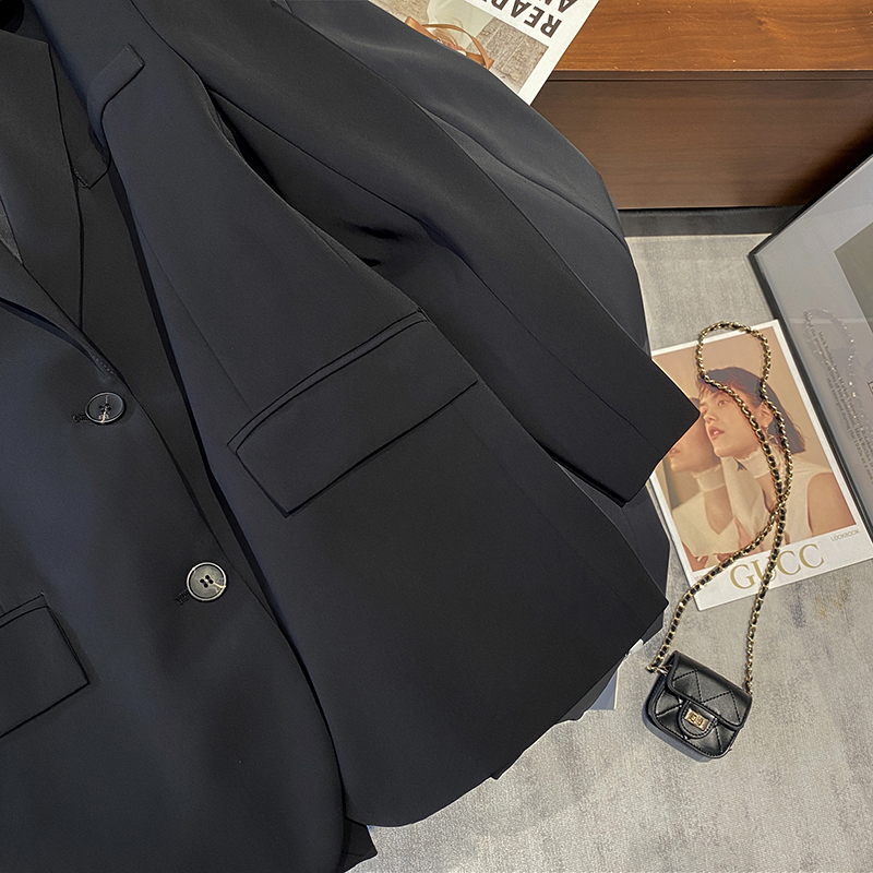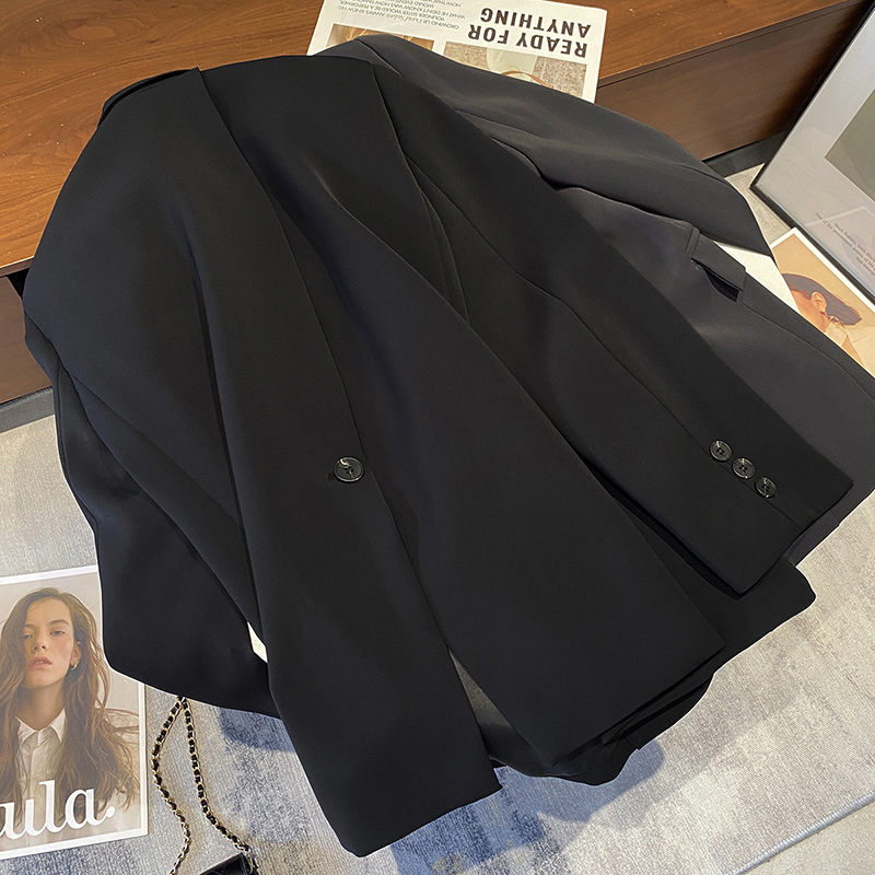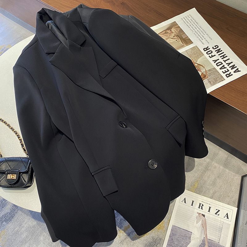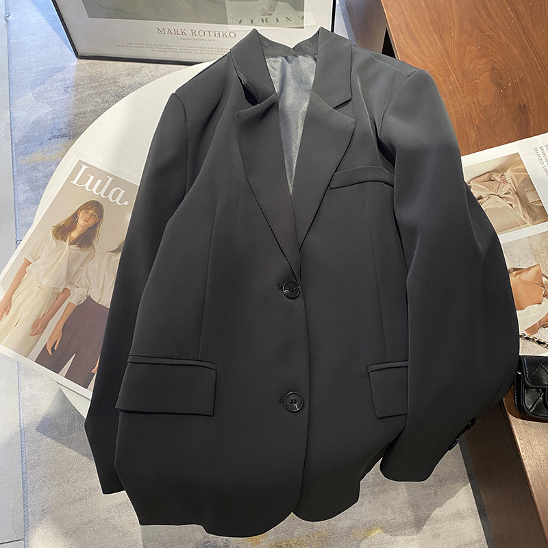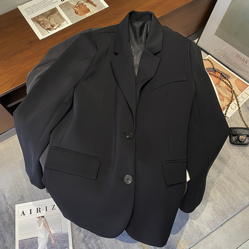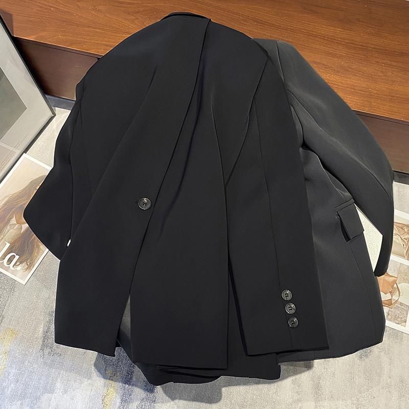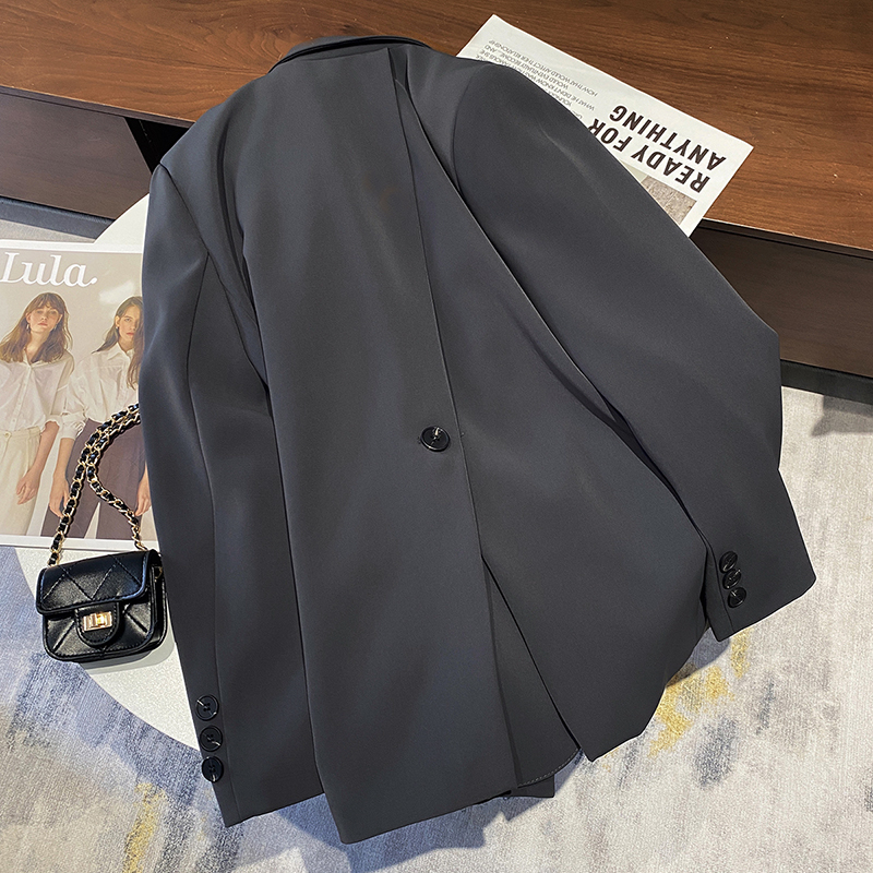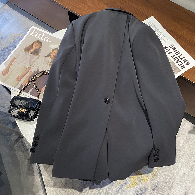 寬松小衆設計感小西裝外套女2025秋季韓版後背一粒釦開叉休閒西服