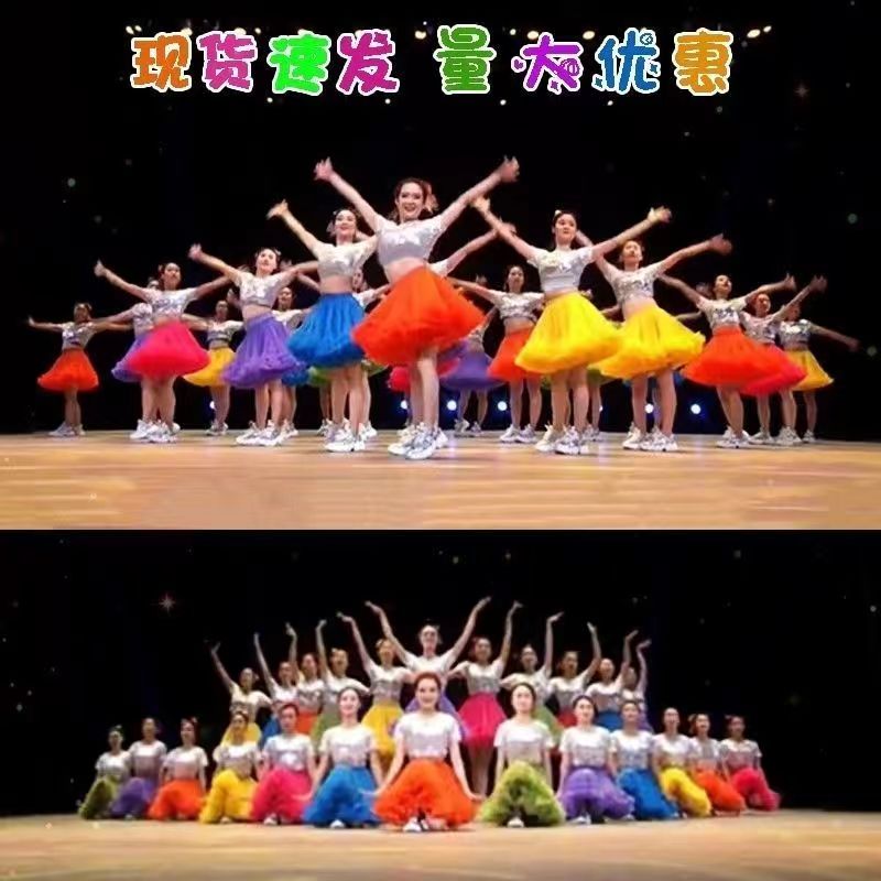 女團演出服裙子活動表演一路花開舞蹈服半袖彩色蓬蓬裙成人裙子