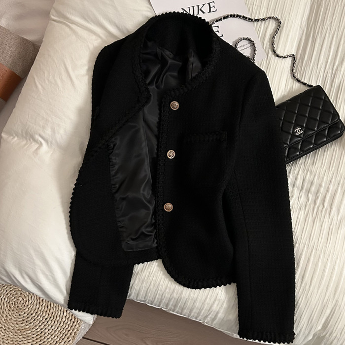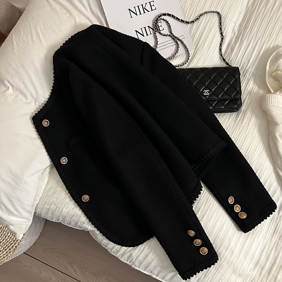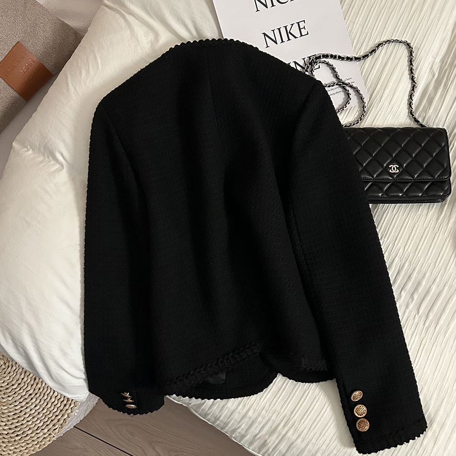 冬天黑色高級感西裝外套女小香風2025年秋冬季新款小個子短款上衣