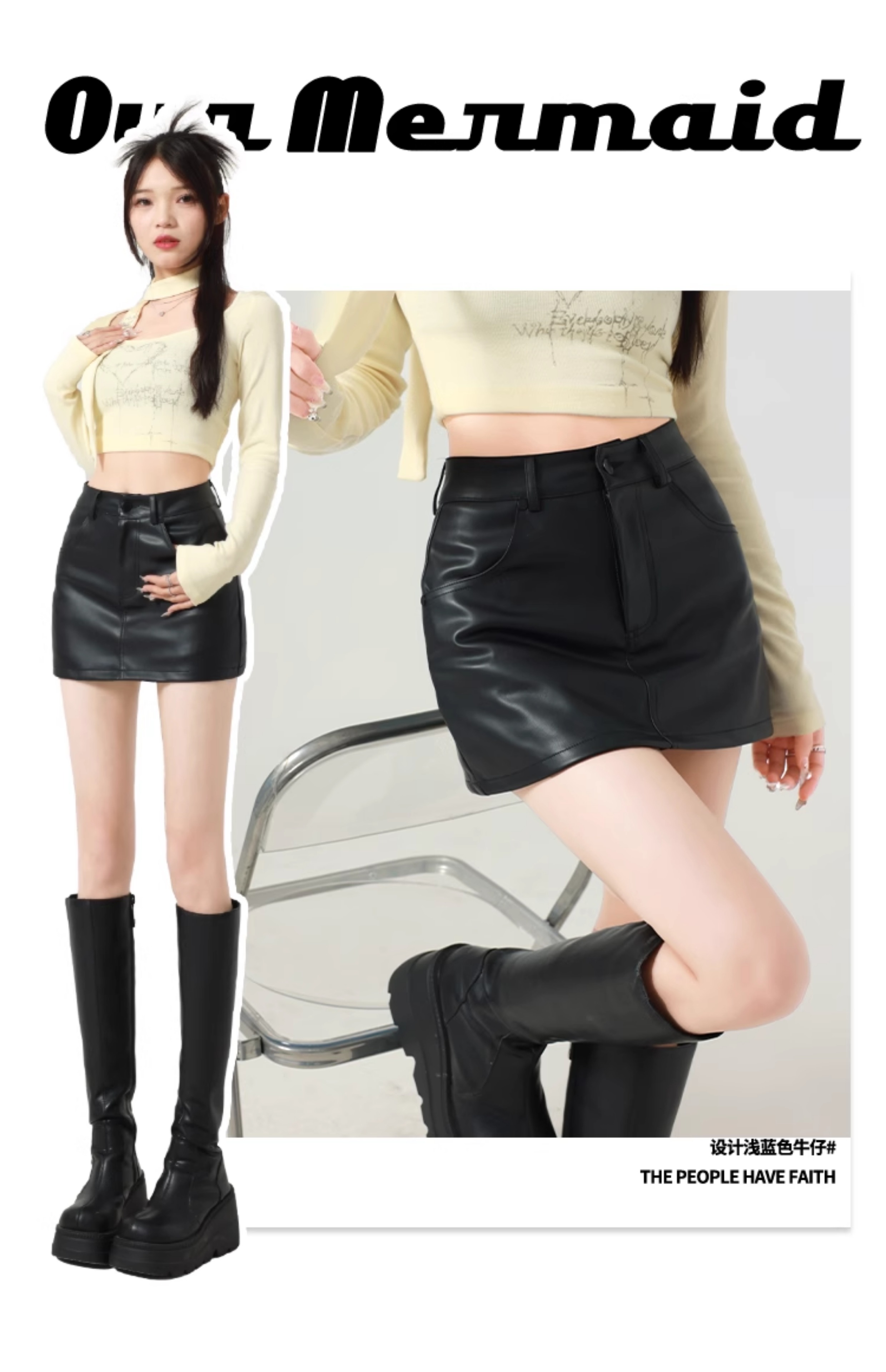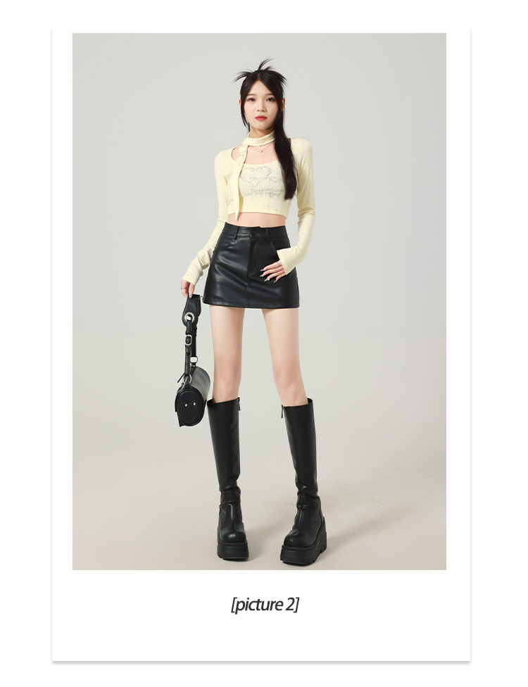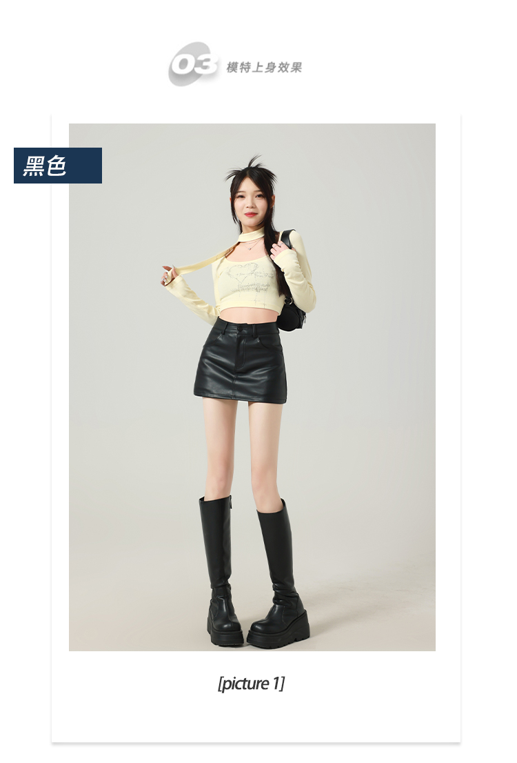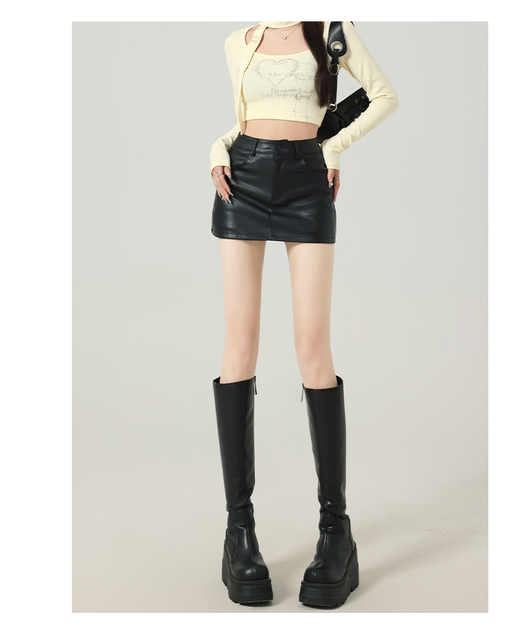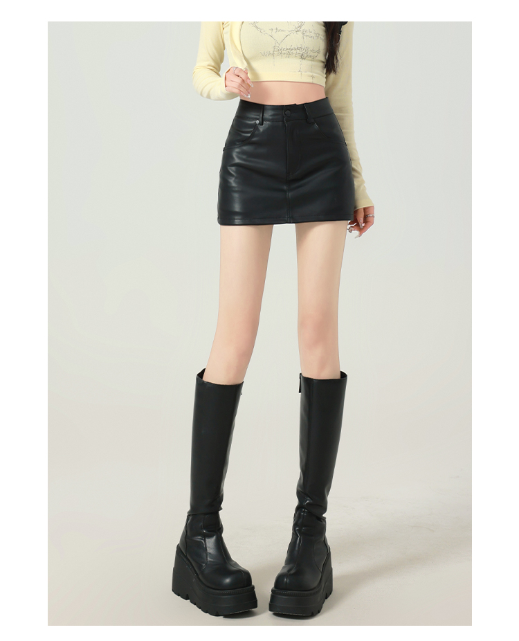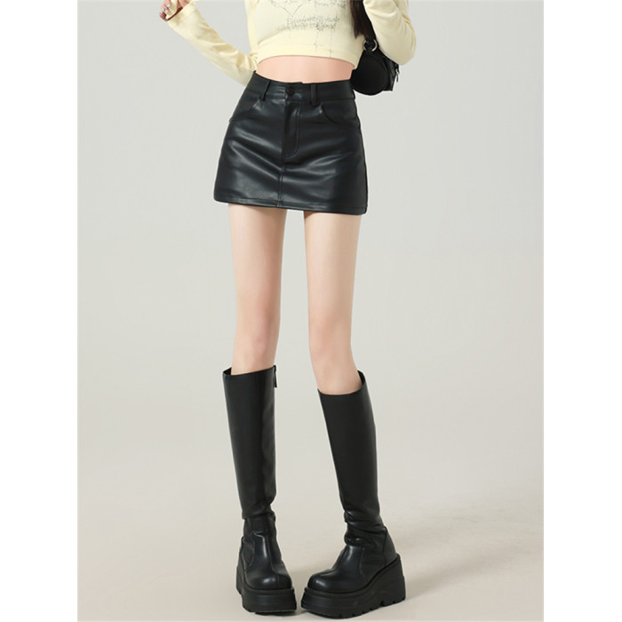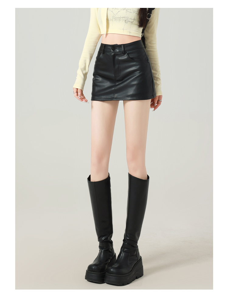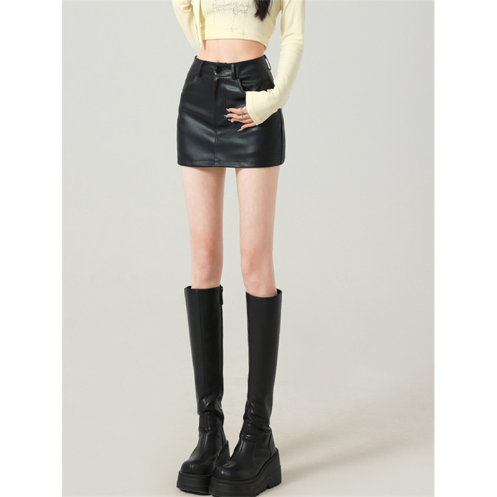 辣妹包臀PU皮裙女秋季配毛衣一步裙高腰顯瘦黑色緊身裙褲a字短裙