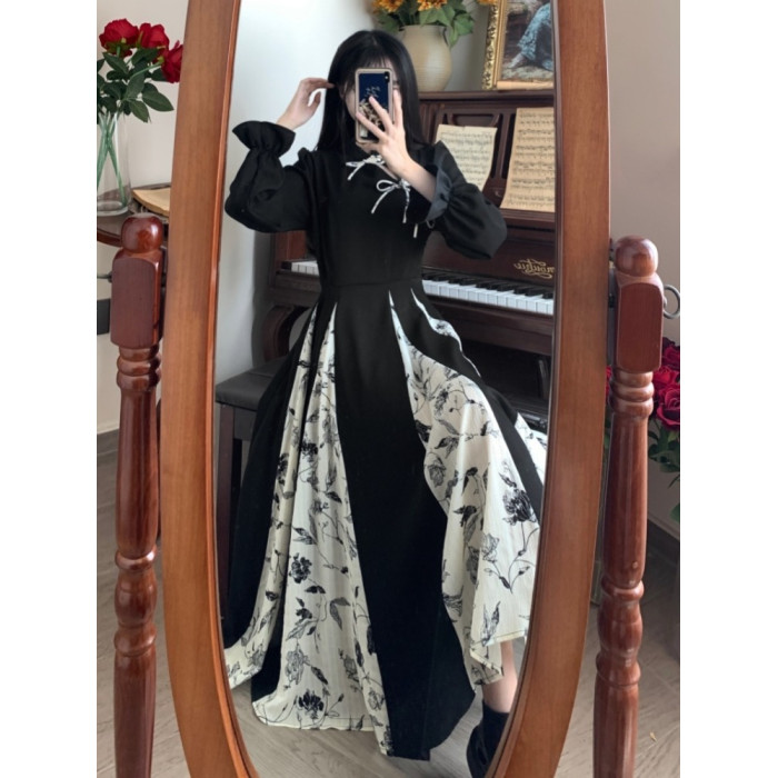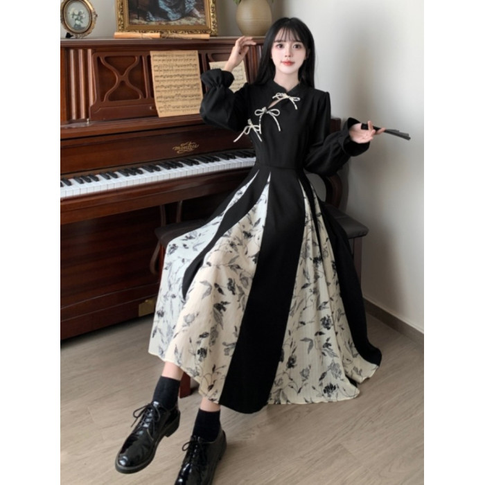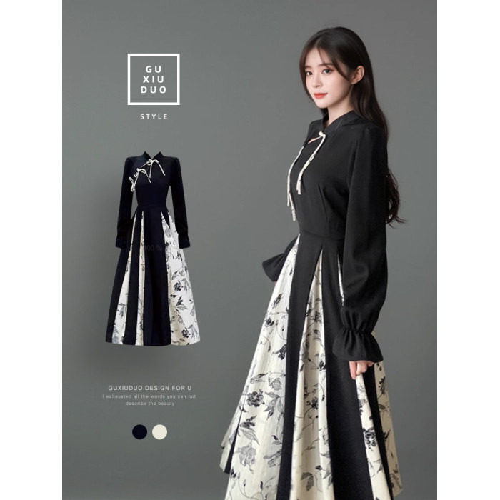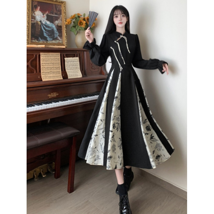 出蓆重要場合巨好看的早秋冬裝日國風新中式旗袍帝政長袖連衣裙子