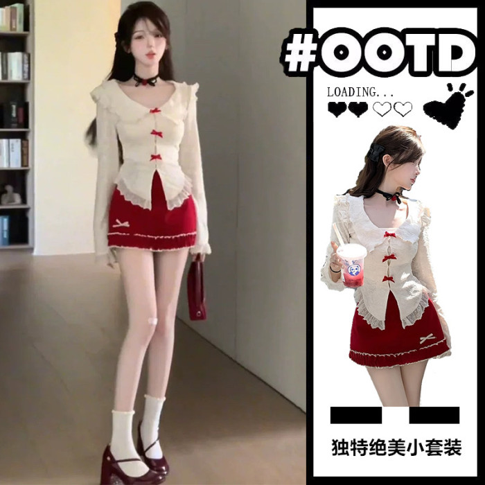 早秋韓系高級感甜辣女裝連衣裙子純欲富家千金風miu系穿搭套裝裙