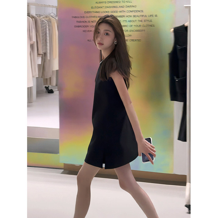 2025夏季新款法式高級感小黑裙氣質絕美小香風黑色無袖連衣裙子女