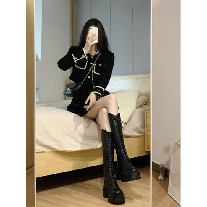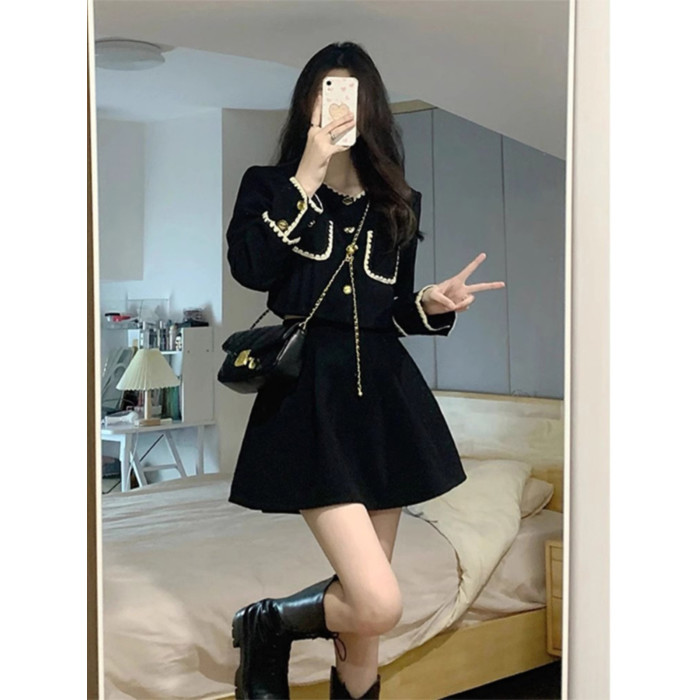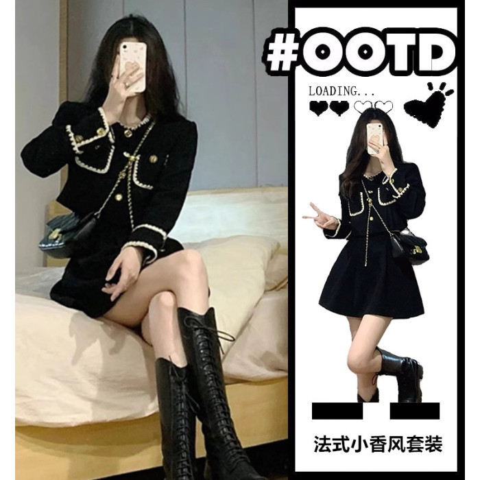 秋季女裝法式富家千金禦姐高級感茶系穿搭韓劇女主小香風套裝裙子