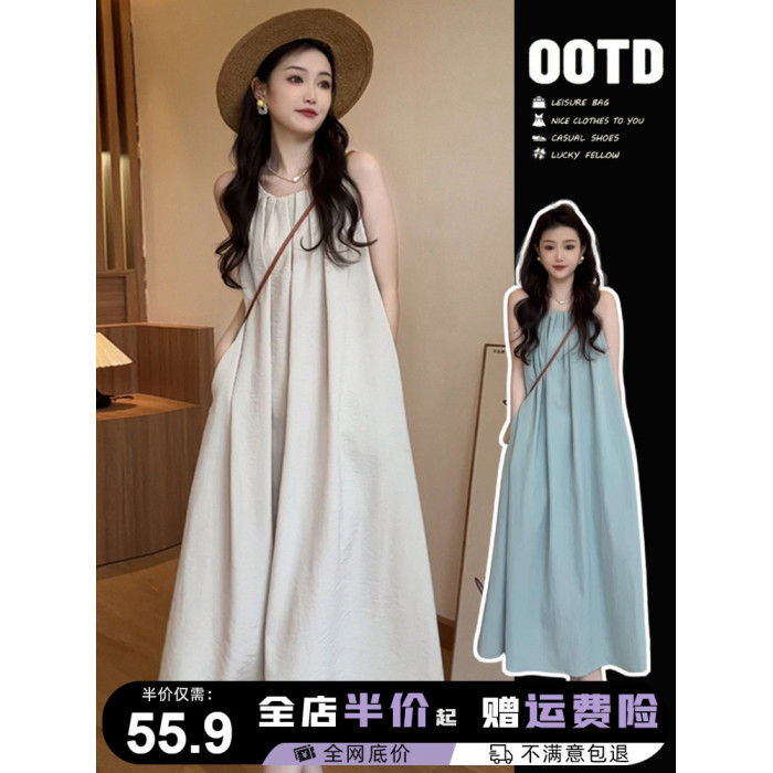 無袖背心連衣裙子女夏季2025新款海邊度假高級感掛脖吊帶沙灘長裙