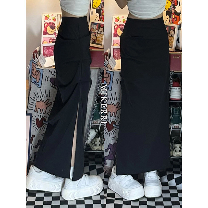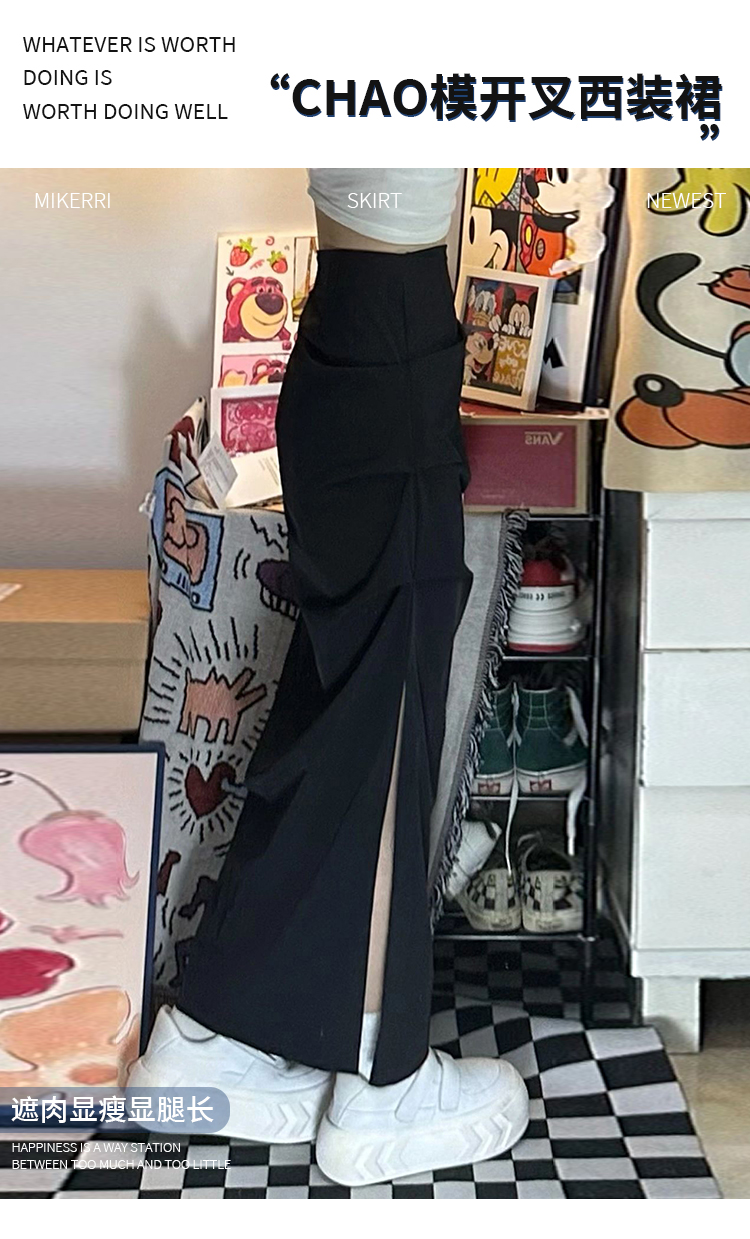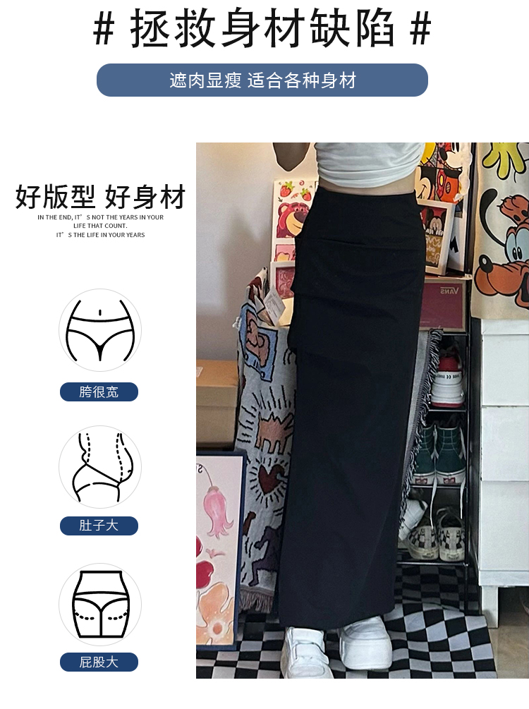 黑色西裝半身裙女秋季大碼胖mm高腰顯瘦梨型身材中長款a字包臀裙