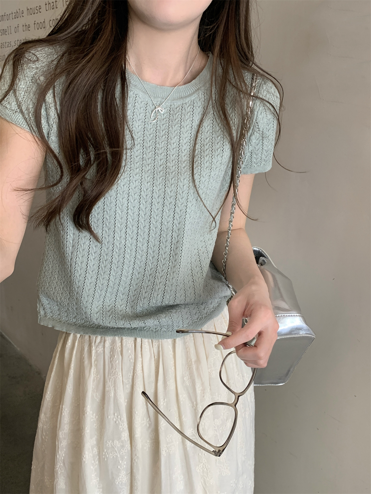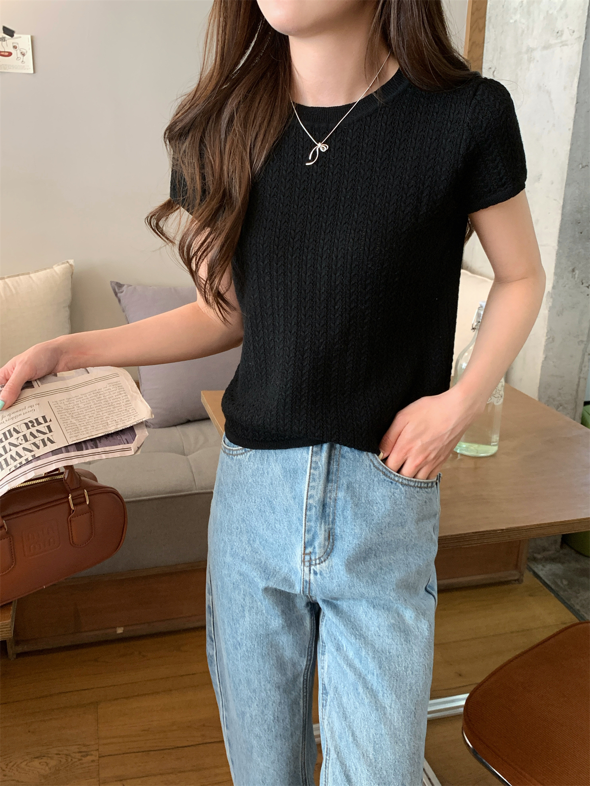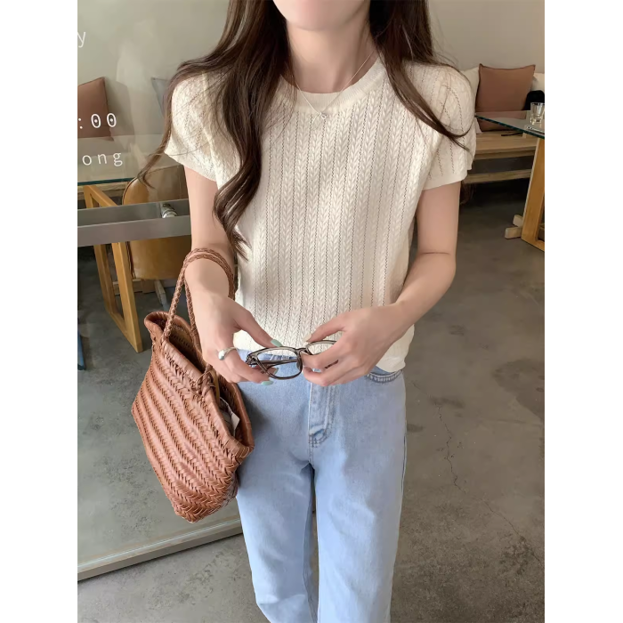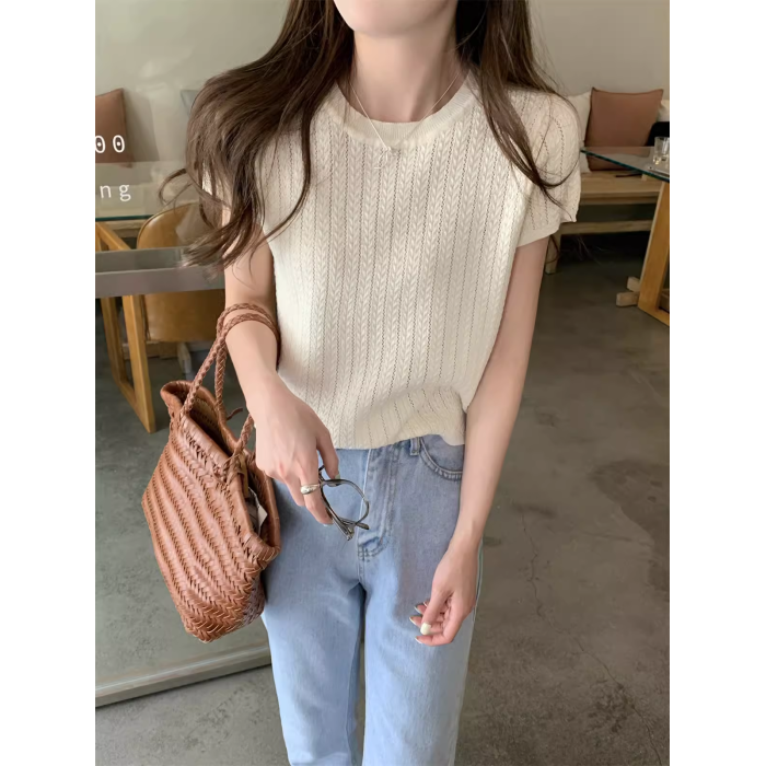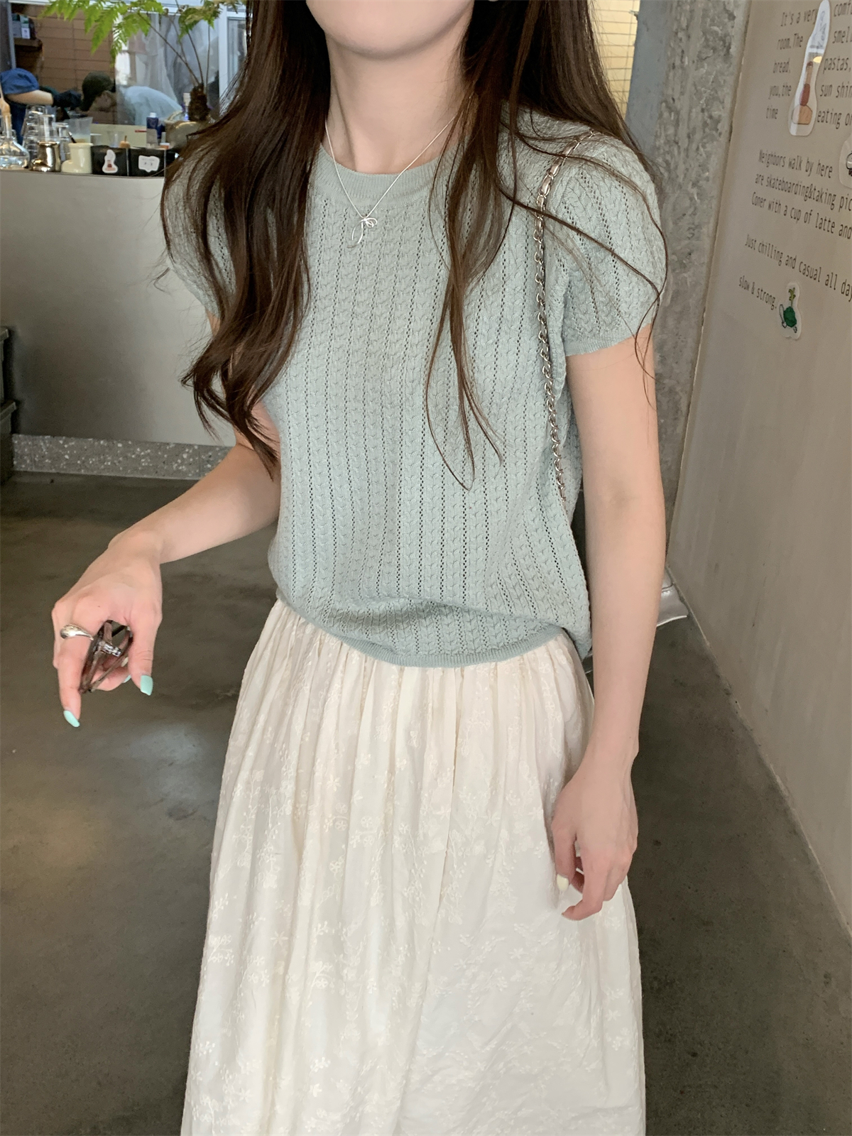 2025初夏穿搭新款正肩針織短袖t恤女獨特漂亮超好看小衫短款上衣