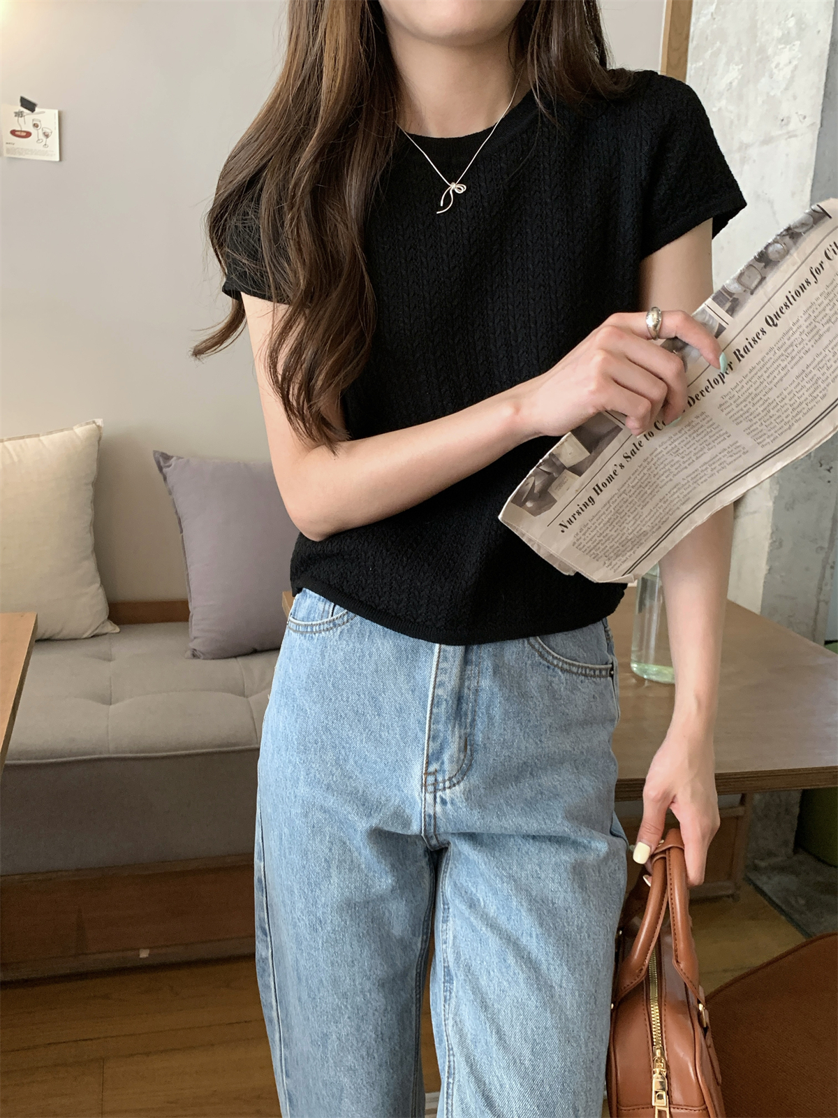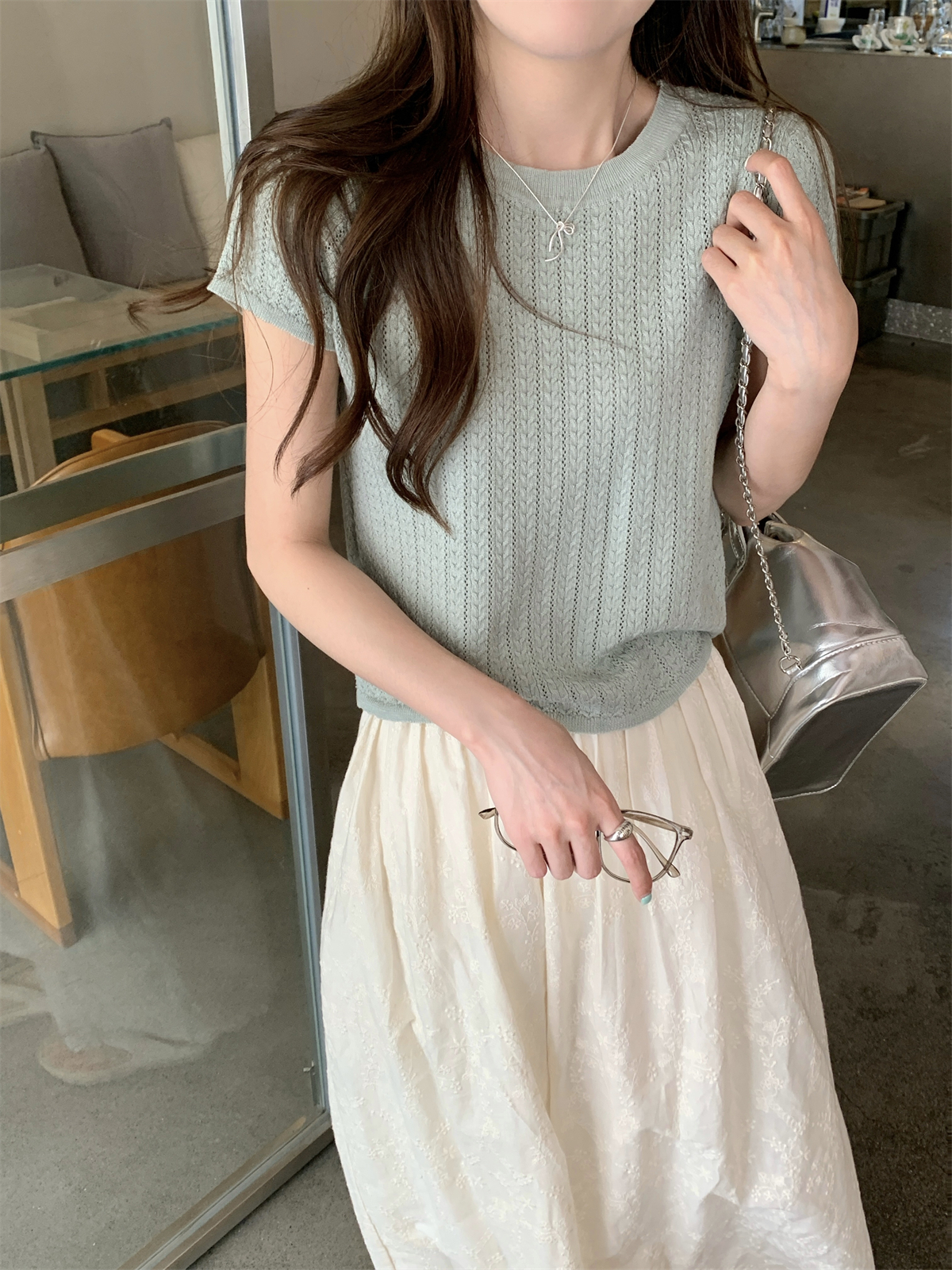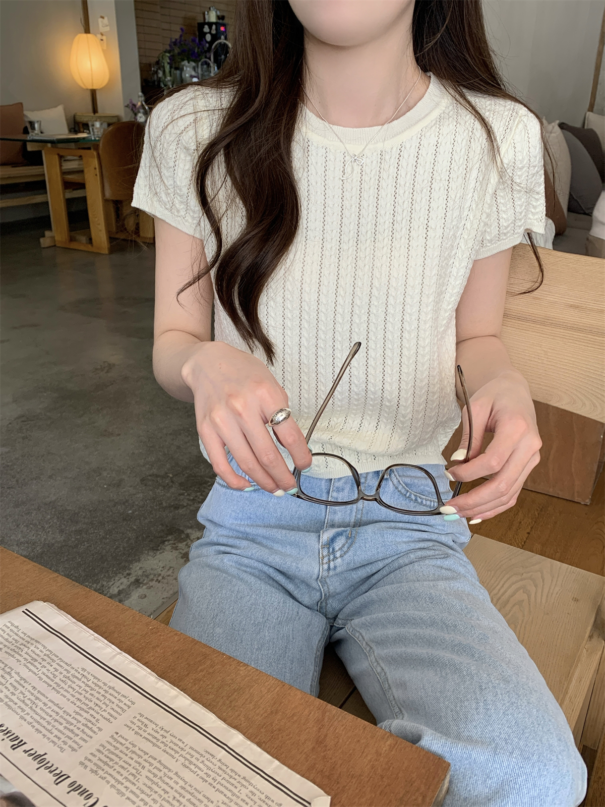 2025初夏穿搭新款正肩針織短袖t恤女獨特漂亮超好看小衫短款上衣
