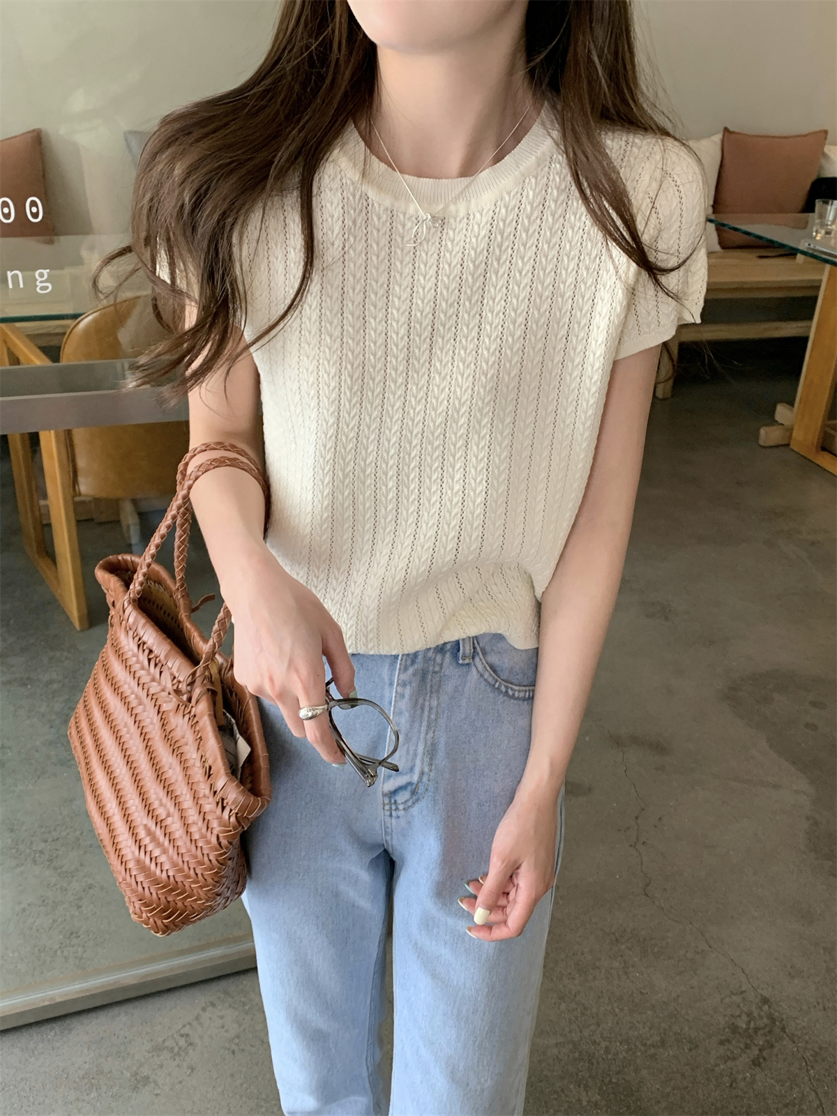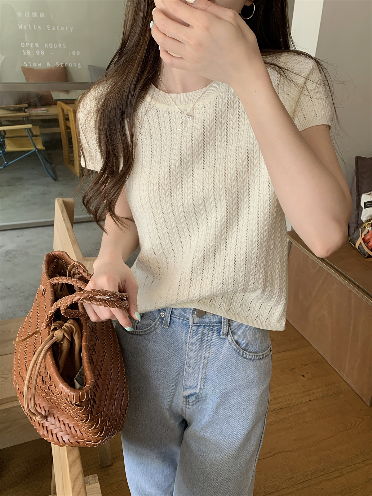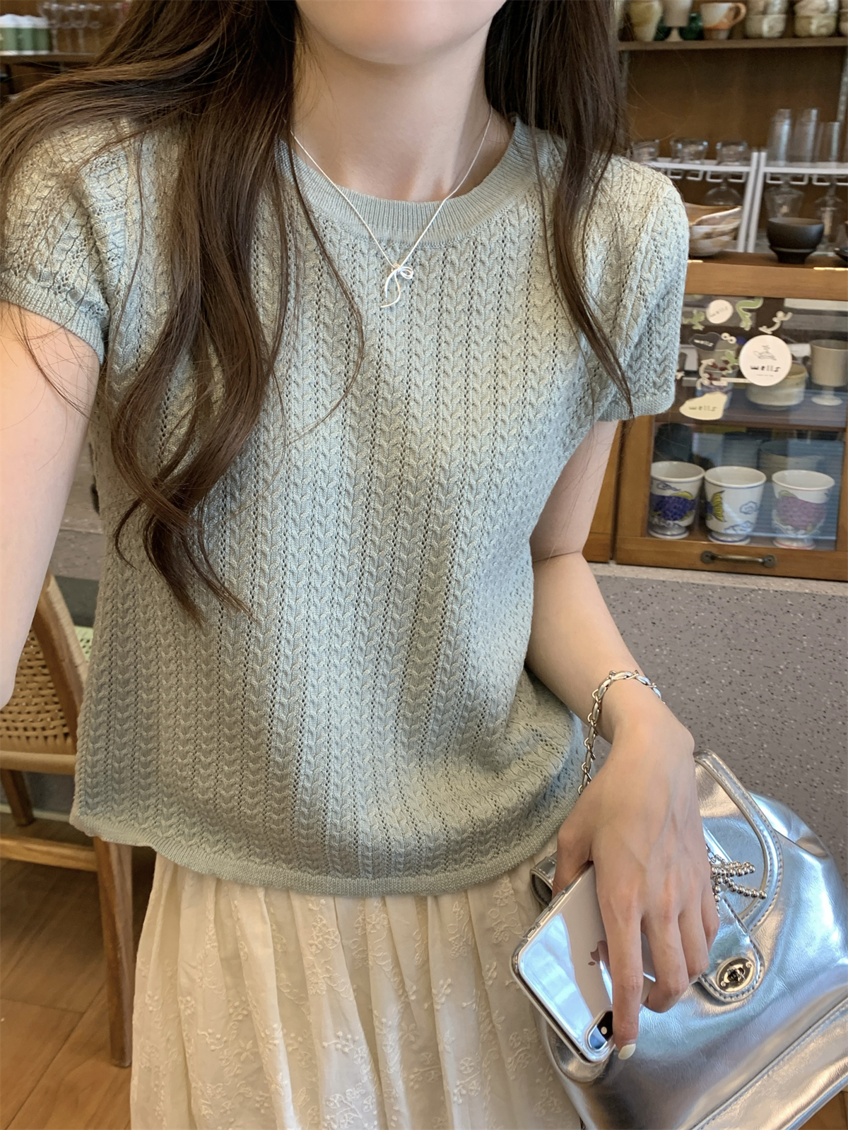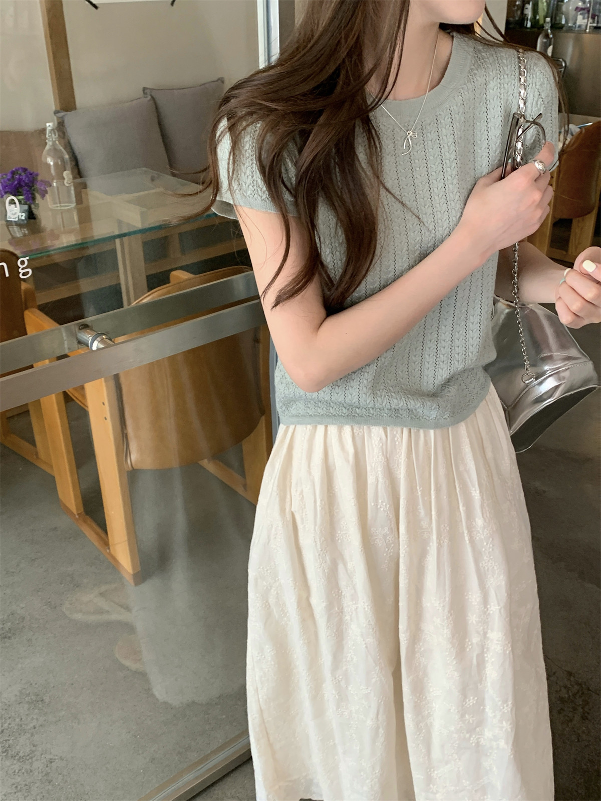 2025初夏穿搭新款正肩針織短袖t恤女獨特漂亮超好看小衫短款上衣