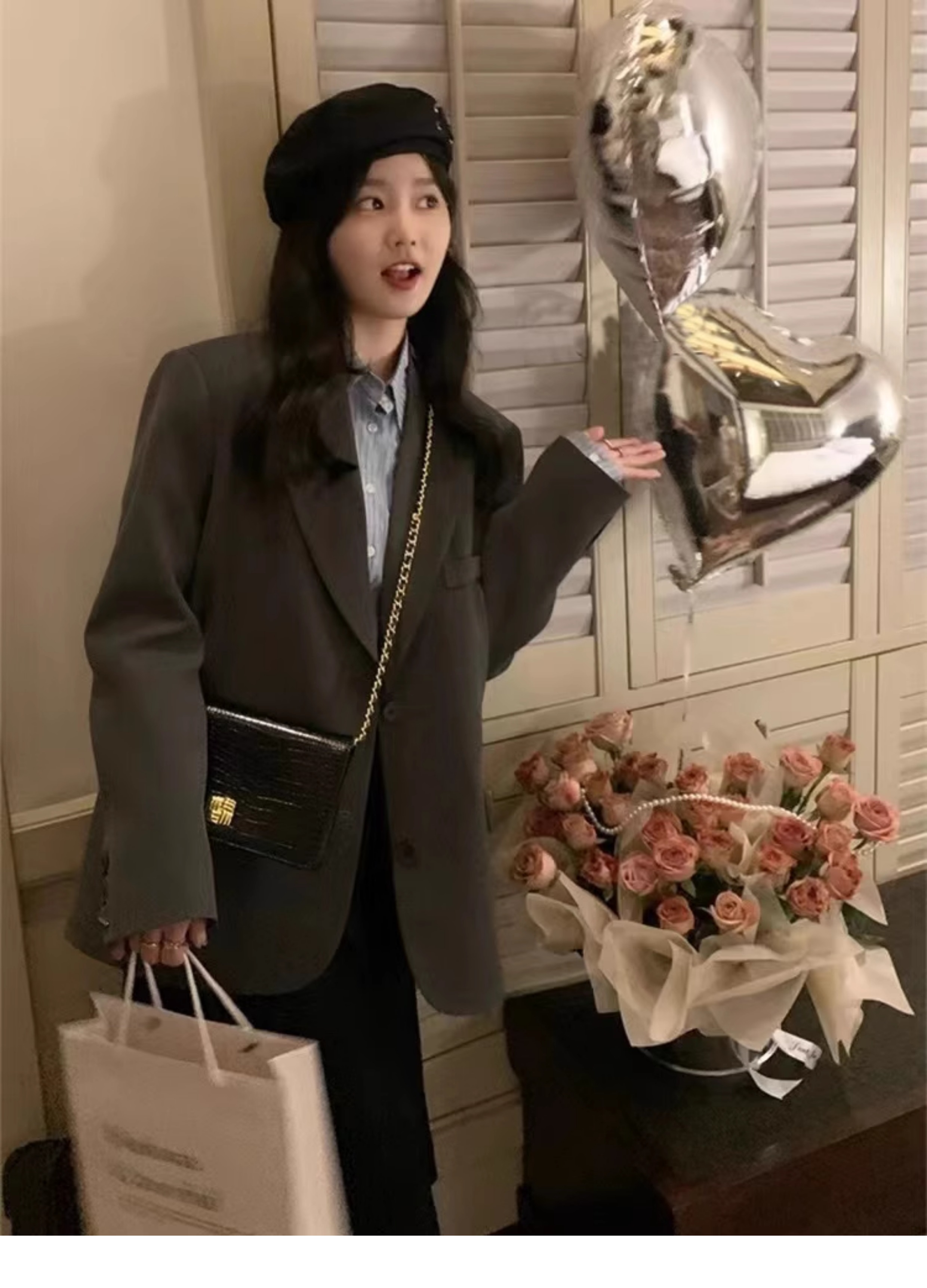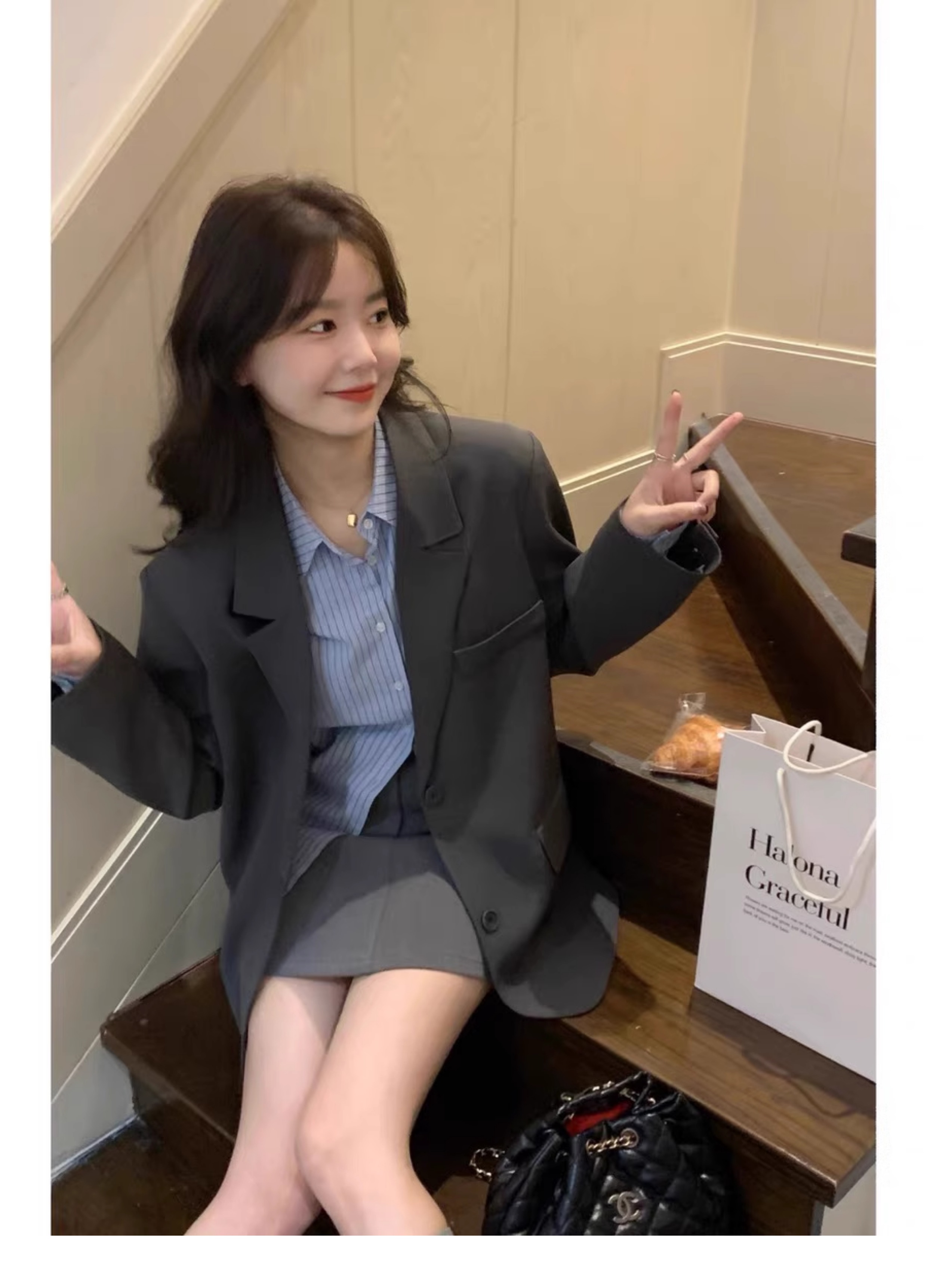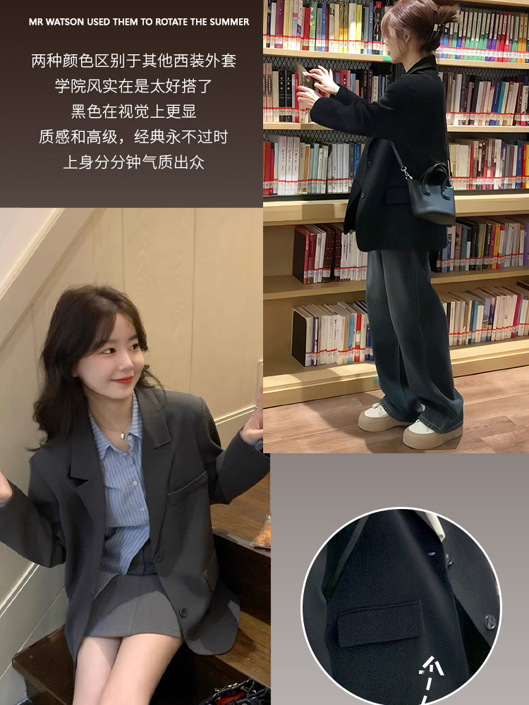 黑色西裝外套女2025春秋新款小個子高級感寬松氣質休閒學院風西服
