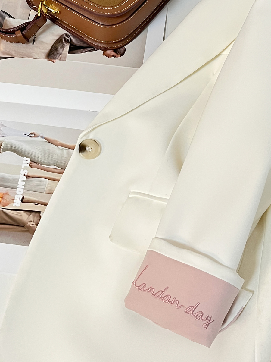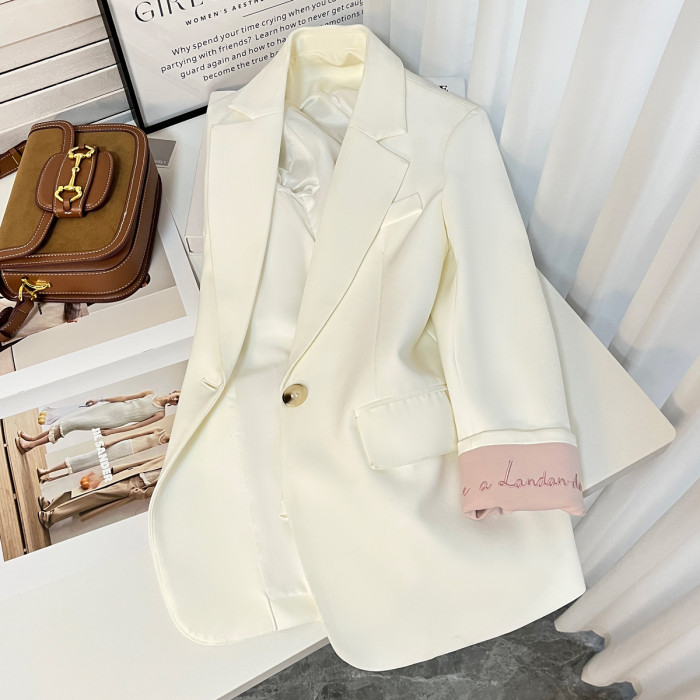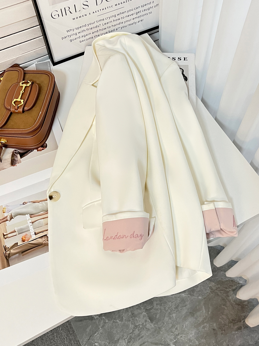 白色刺綉設計感西裝外套女2025春季新款時尚韓系溫柔氣質西服上衣