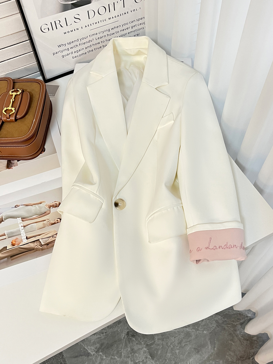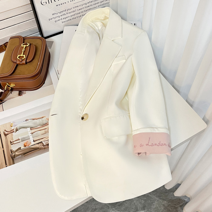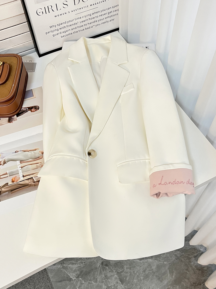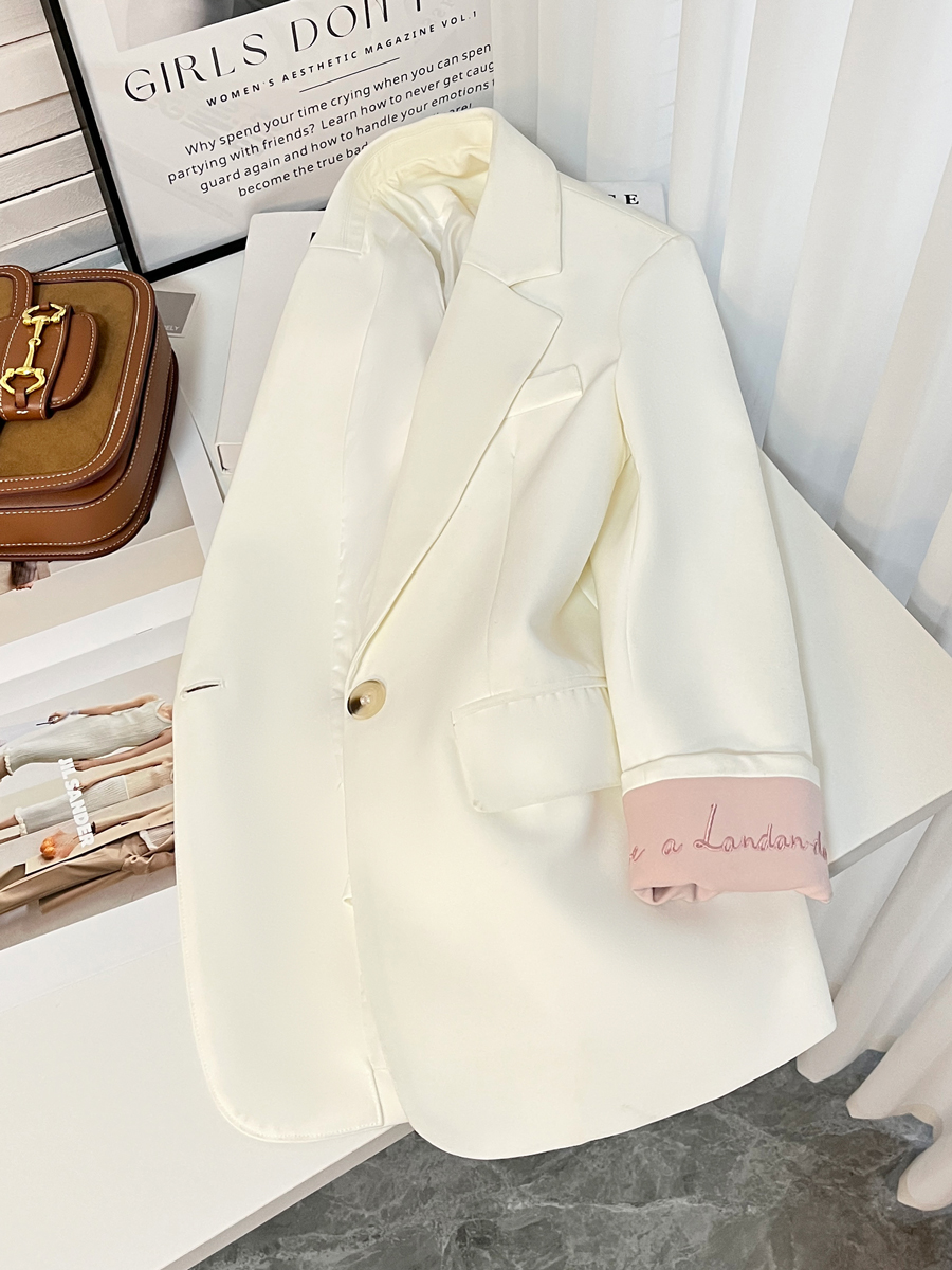 白色刺綉設計感西裝外套女2025春季新款時尚韓系溫柔氣質西服上衣