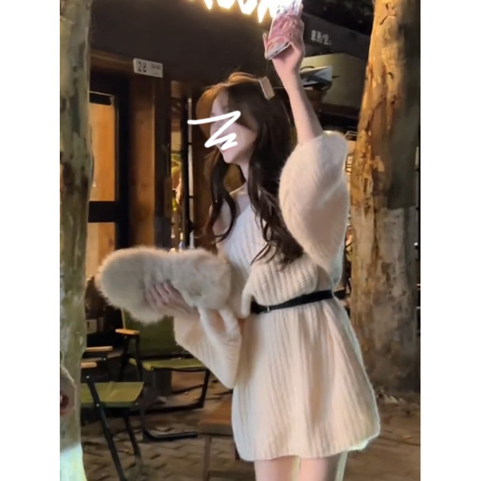 2025新款小個子穿搭針織內搭連衣裙子女秋冬法式氣質溫柔毛衣短裙