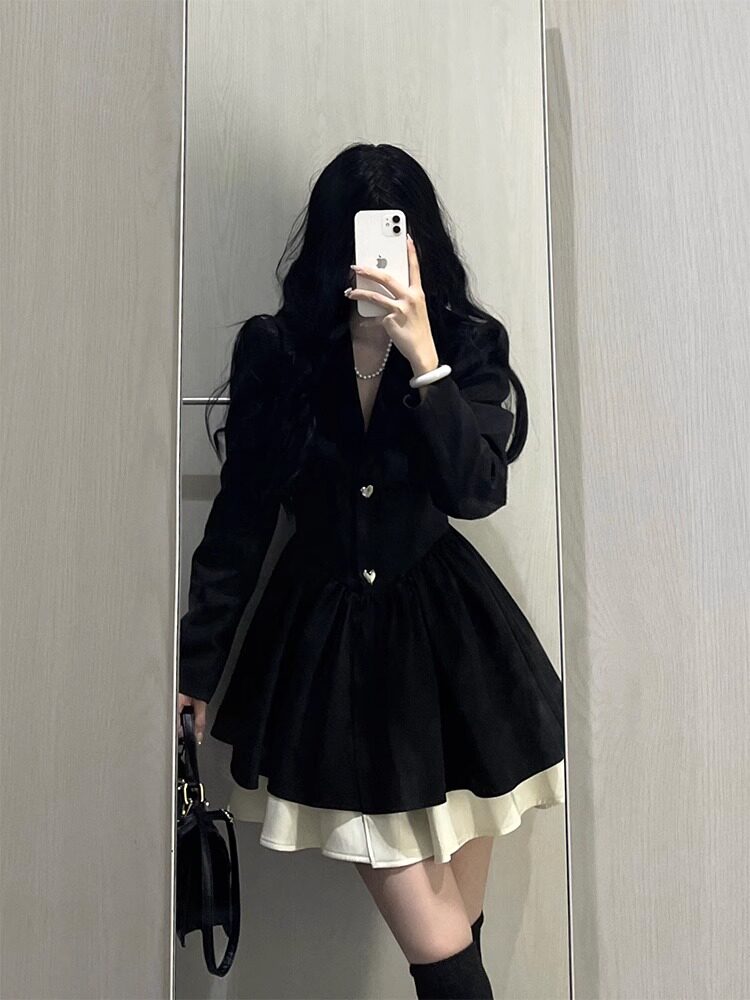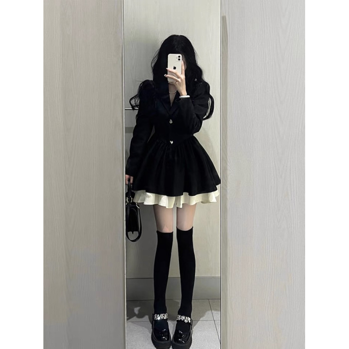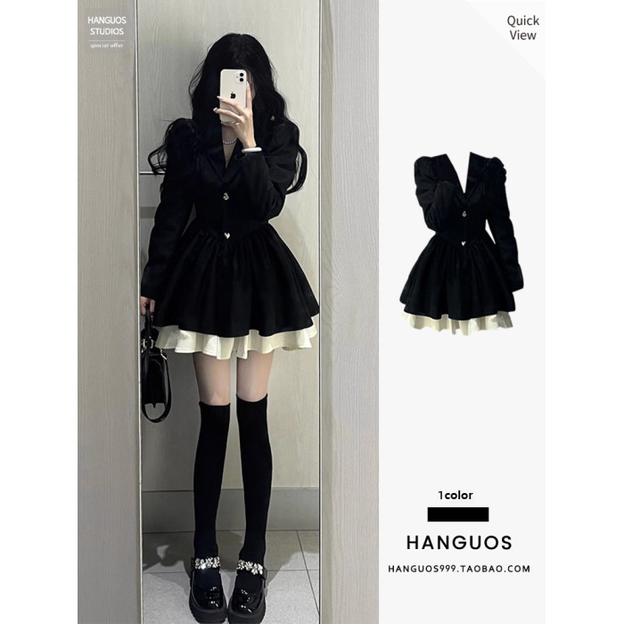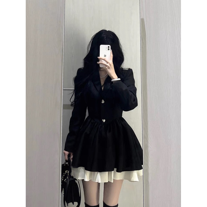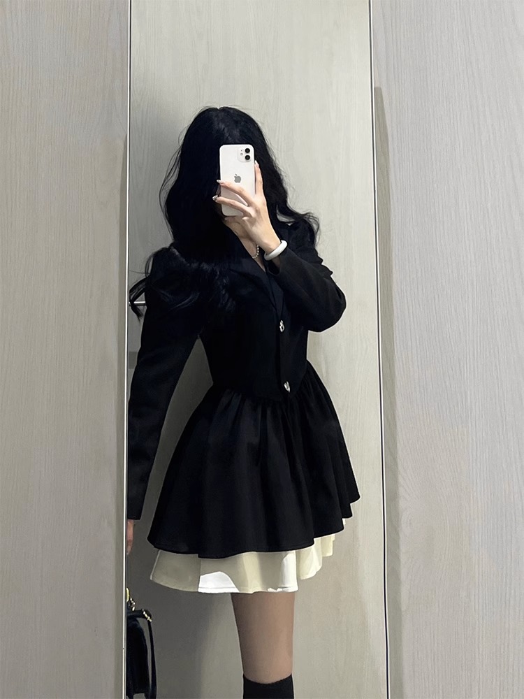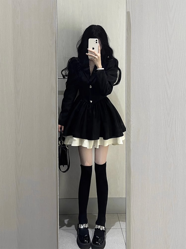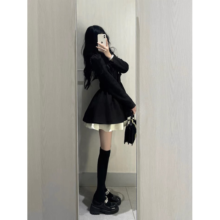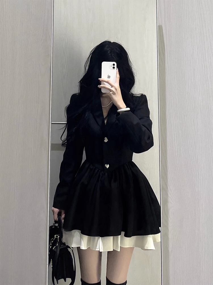小香風西裝連衣裙小個子高級感氣質收腰公主蓬蓬裙約會穿搭小黑裙