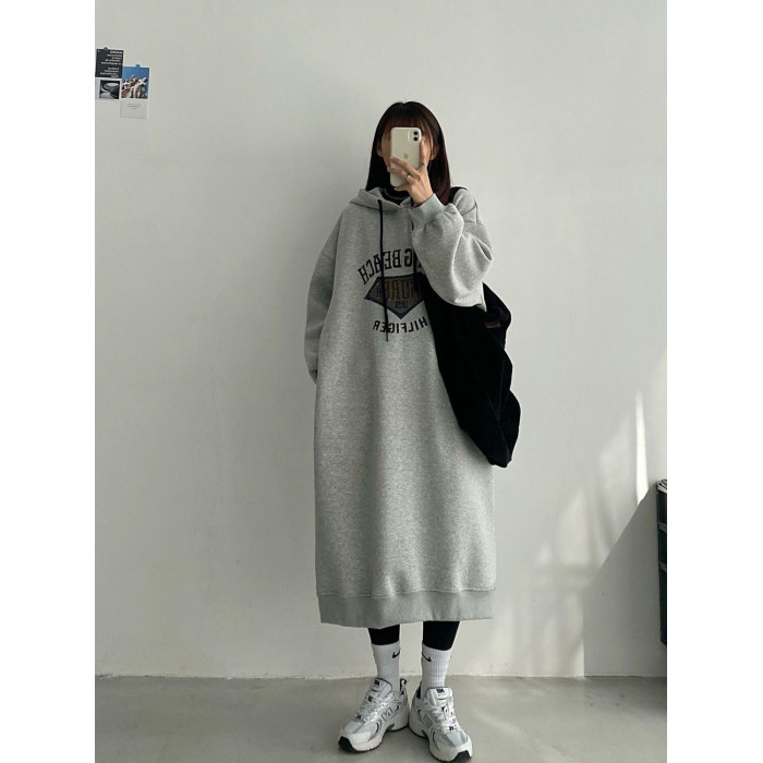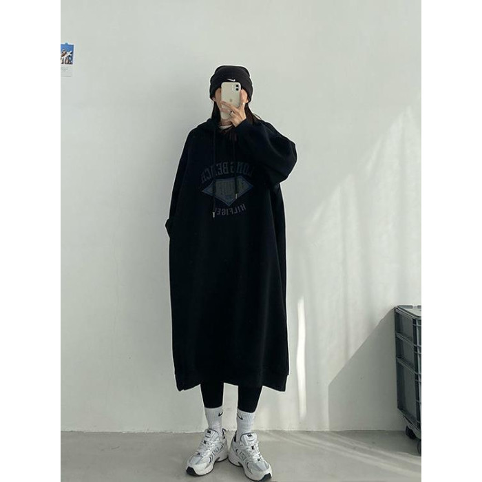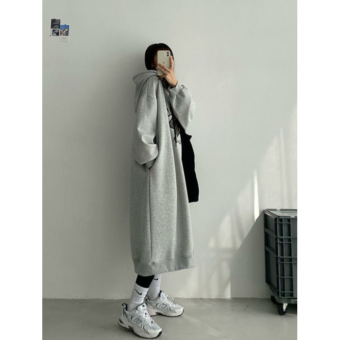 特大碼300斤寬松藏肉顯瘦長款衛衣裙秋冬加絨加厚保暖連帽連衣裙