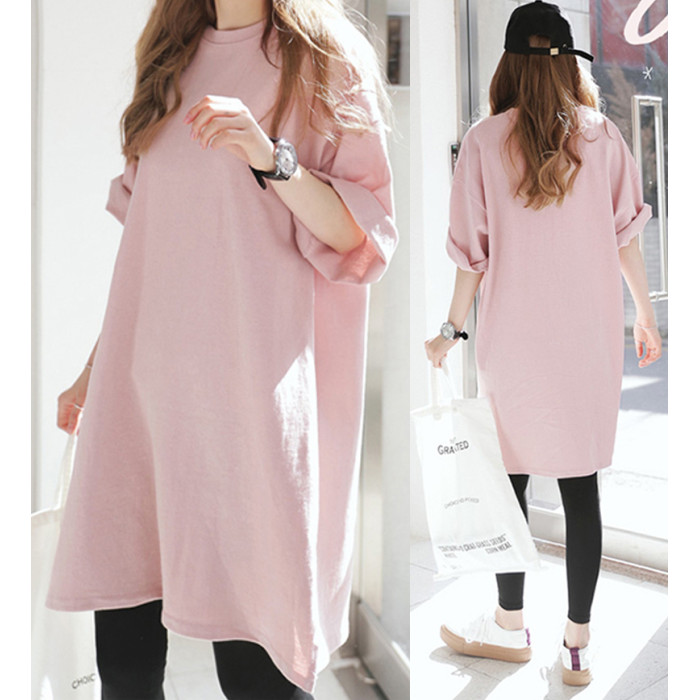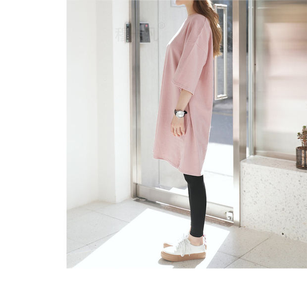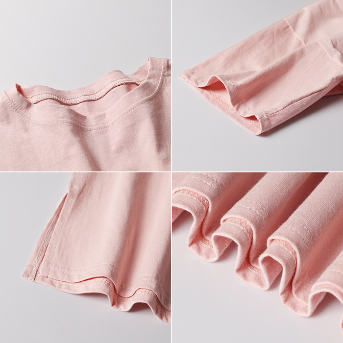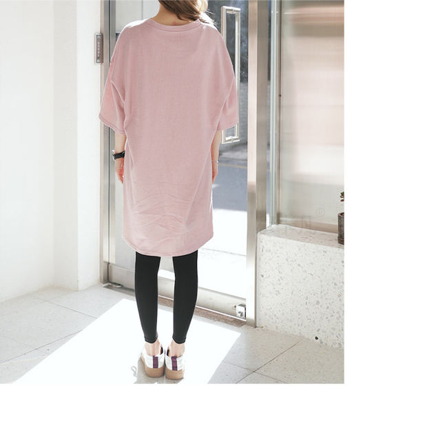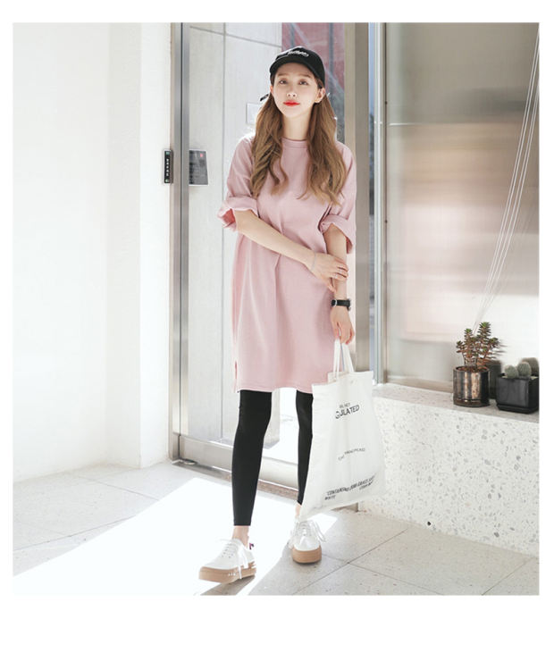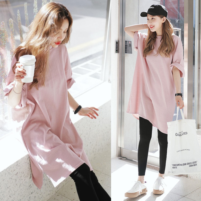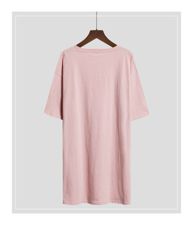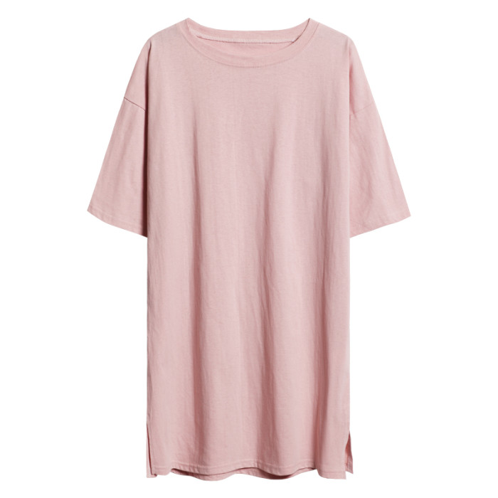 歐貨短袖T恤女夏季2025新款大版寬松純棉開叉中長款粉色半袖上衣