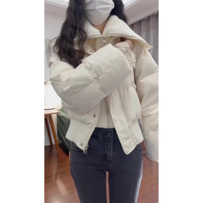 高級感超好看短款棉服女冬季2025新款拼接領設計感小個子夾棉外套