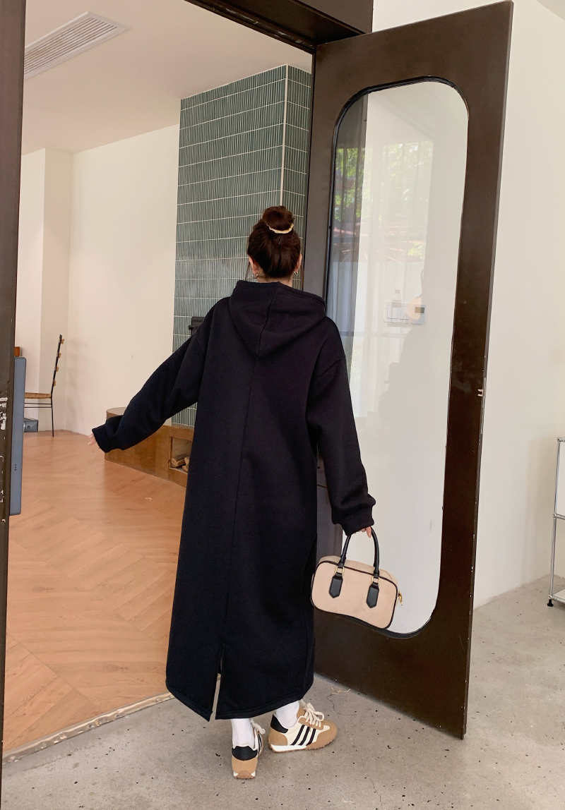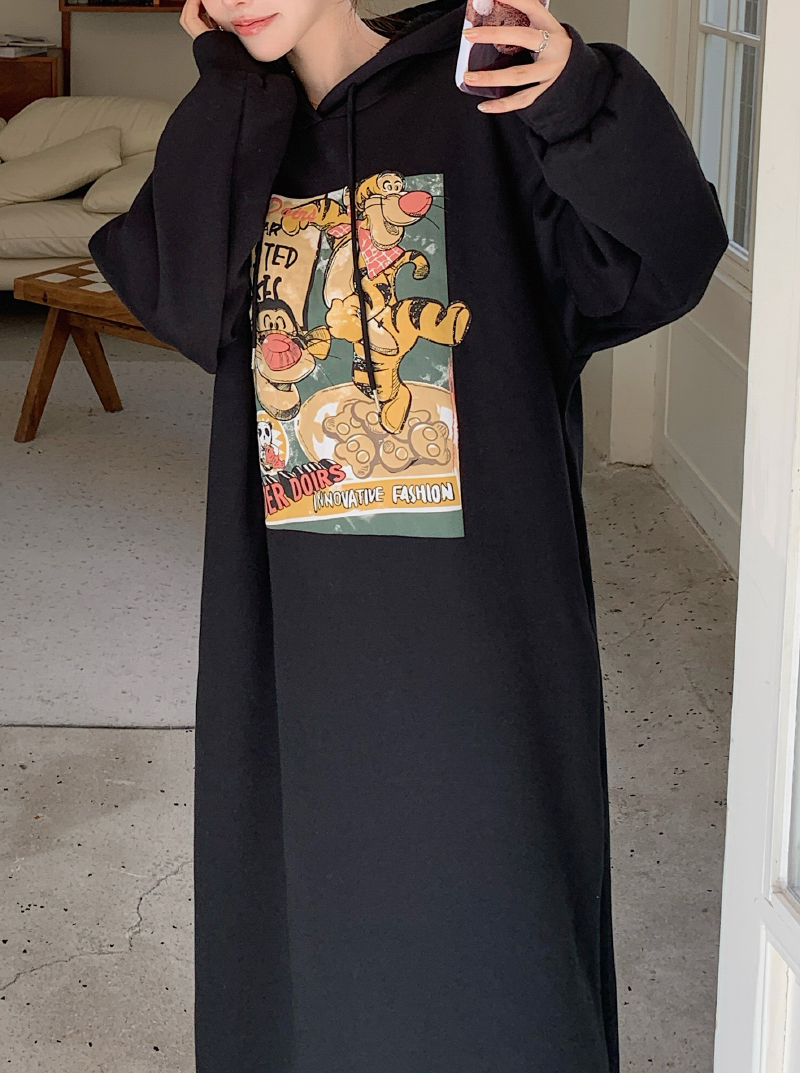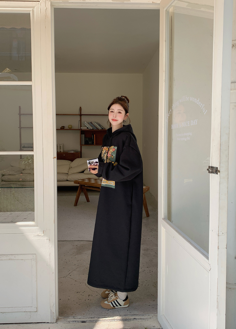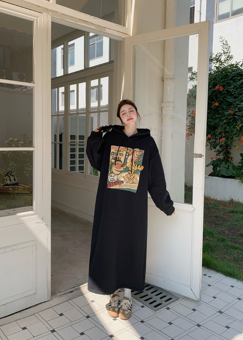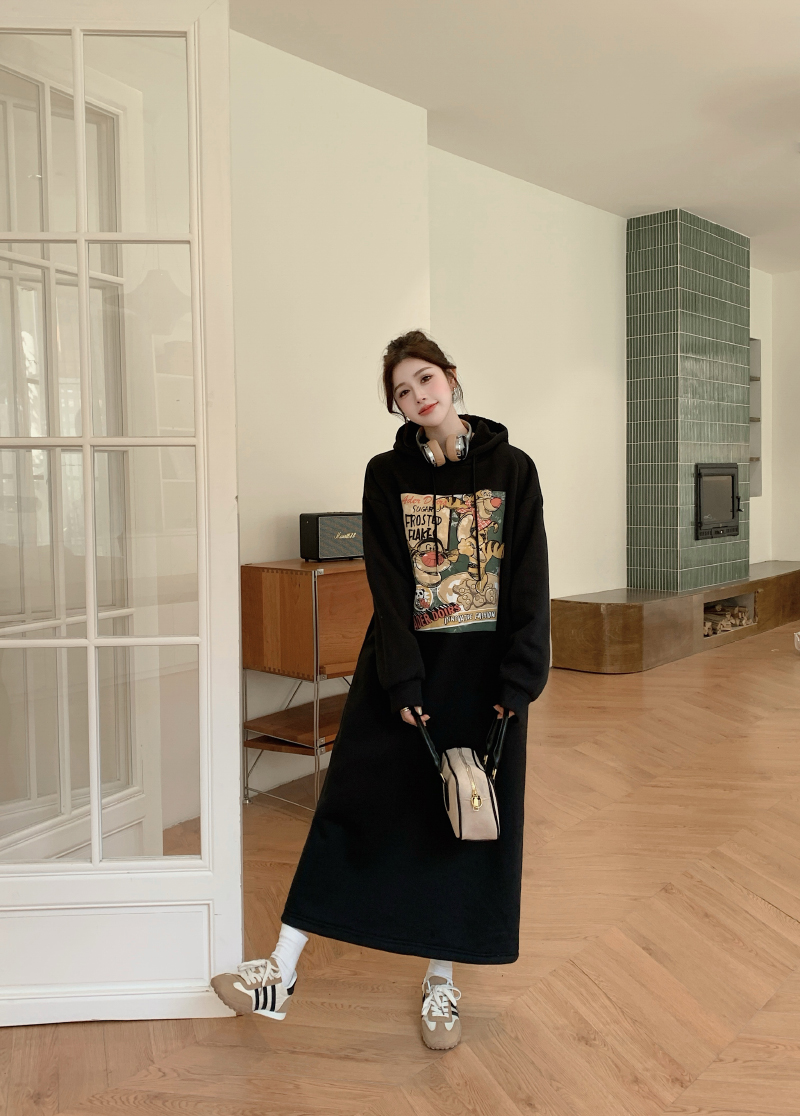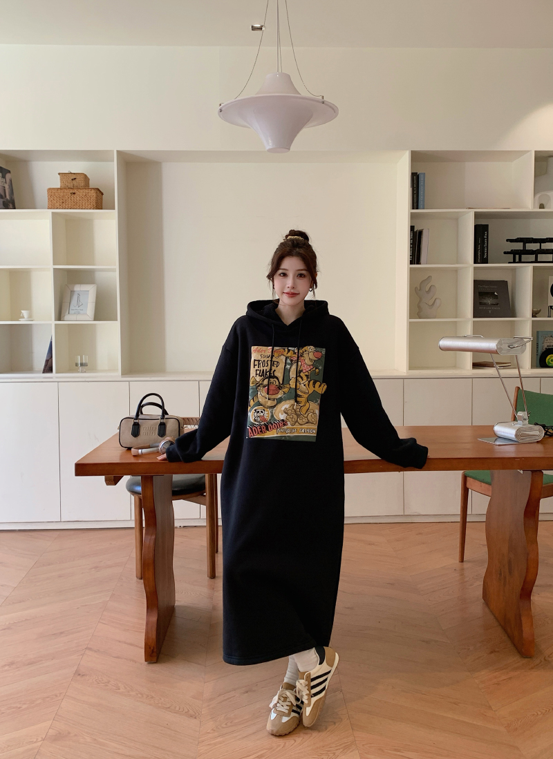 加絨加厚卡通印花大碼衛衣裙女冬季胖mm寬松顯瘦嬰兒絨連帽連衣裙