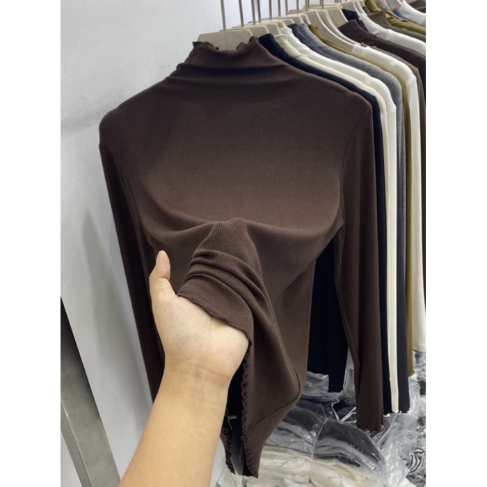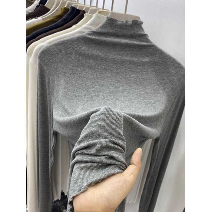 半高領打底衫女春秋大碼胖mm體恤針織衫灰色長袖t恤小衫內搭上衣