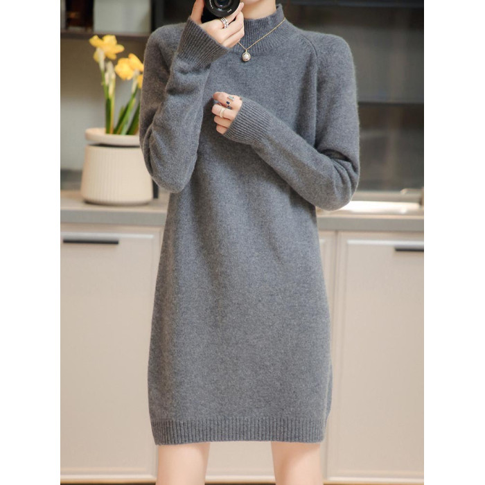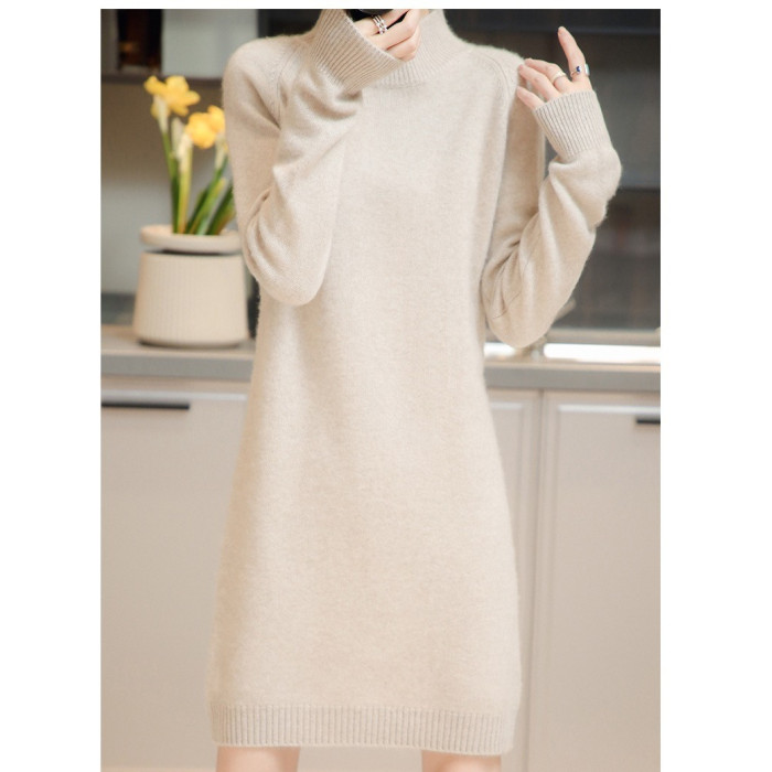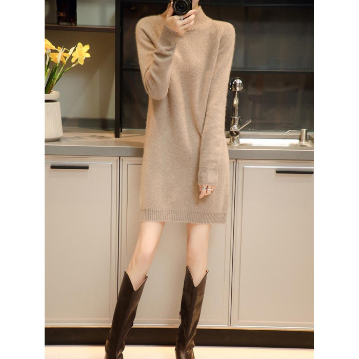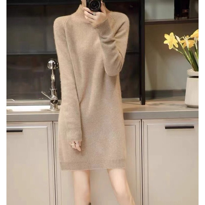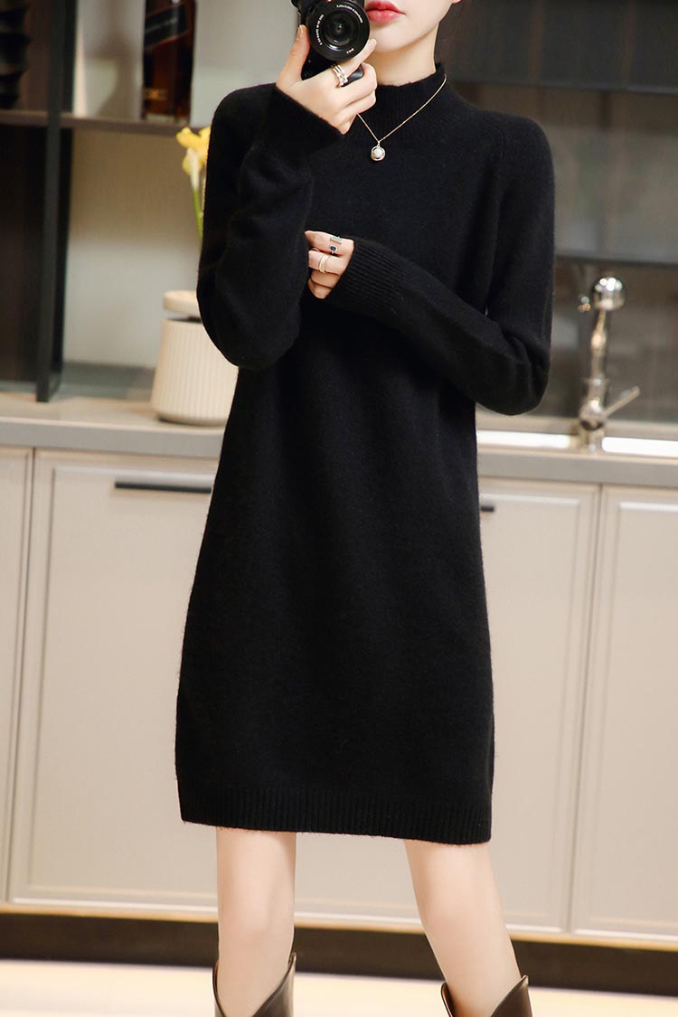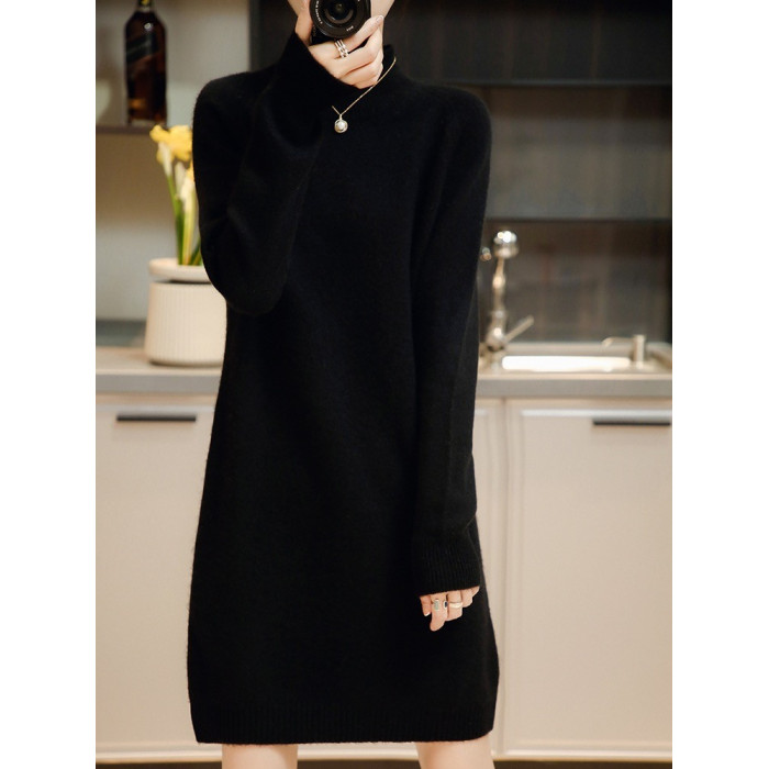 2023秋冬新款毛衣裙中長款配大衣打底裙子簡約內搭針織加厚連衣裙