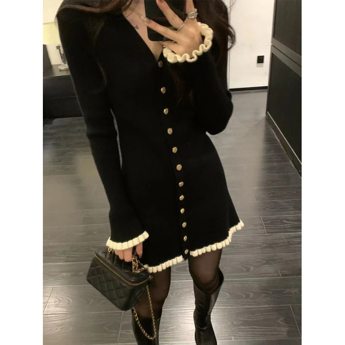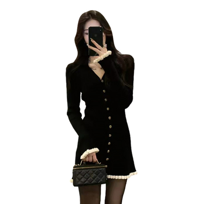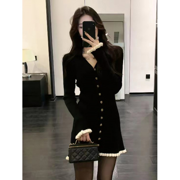 小個子香風黑色連衣裙子女秋冬季2025新款法式氣質絕美穿搭高級感