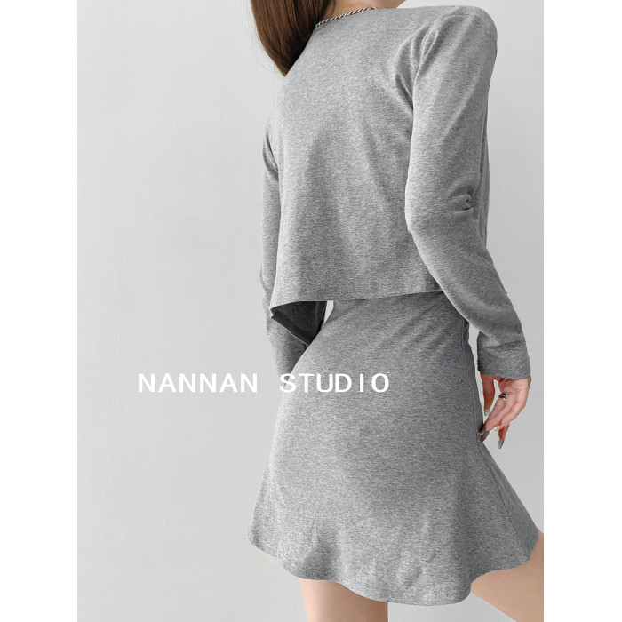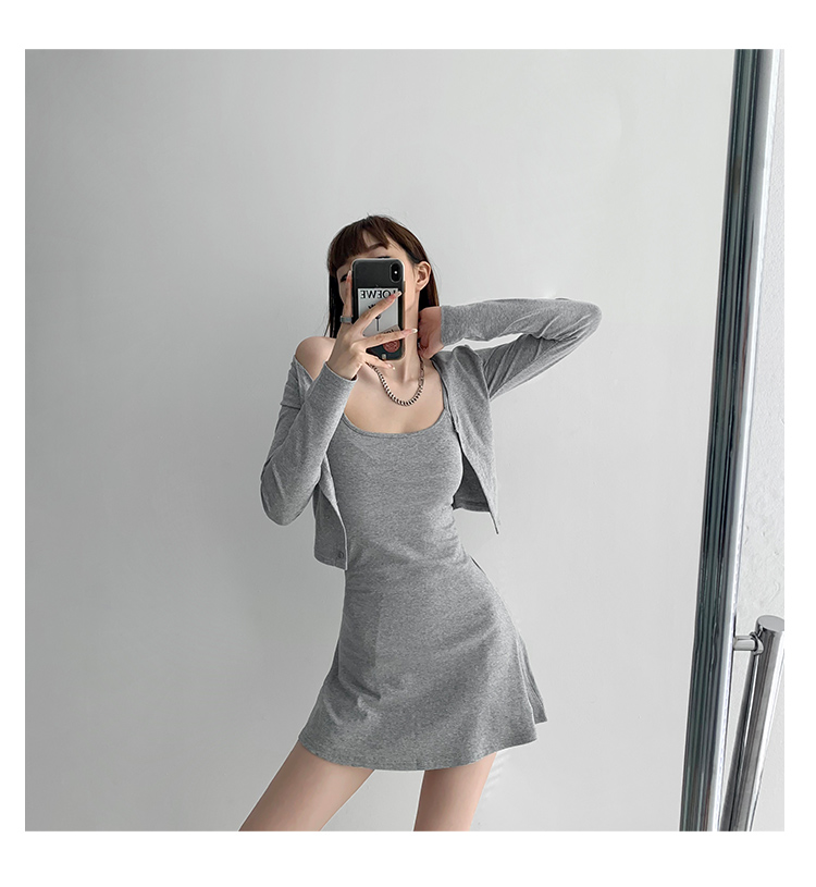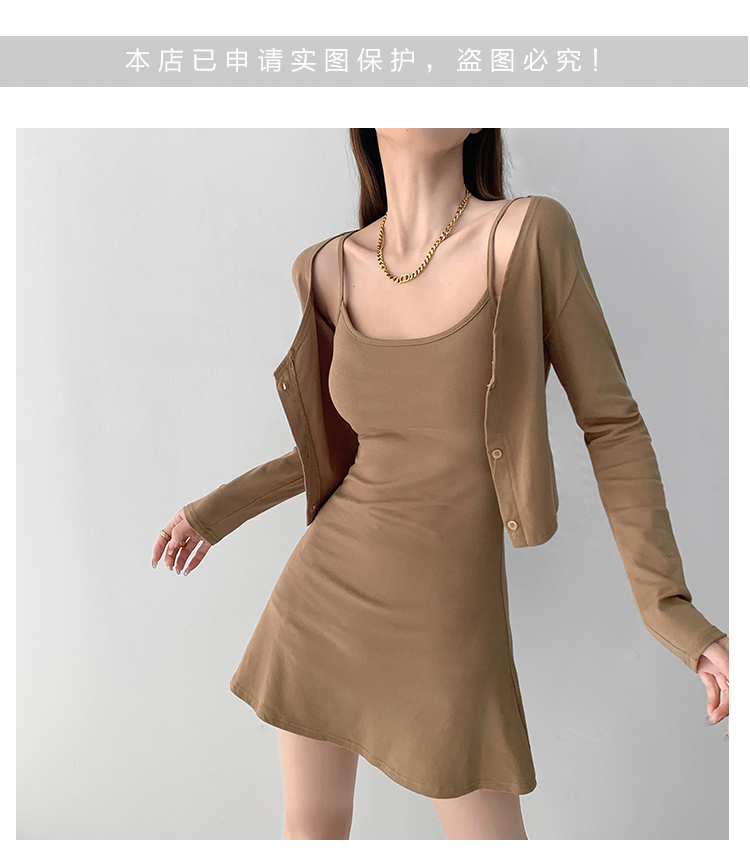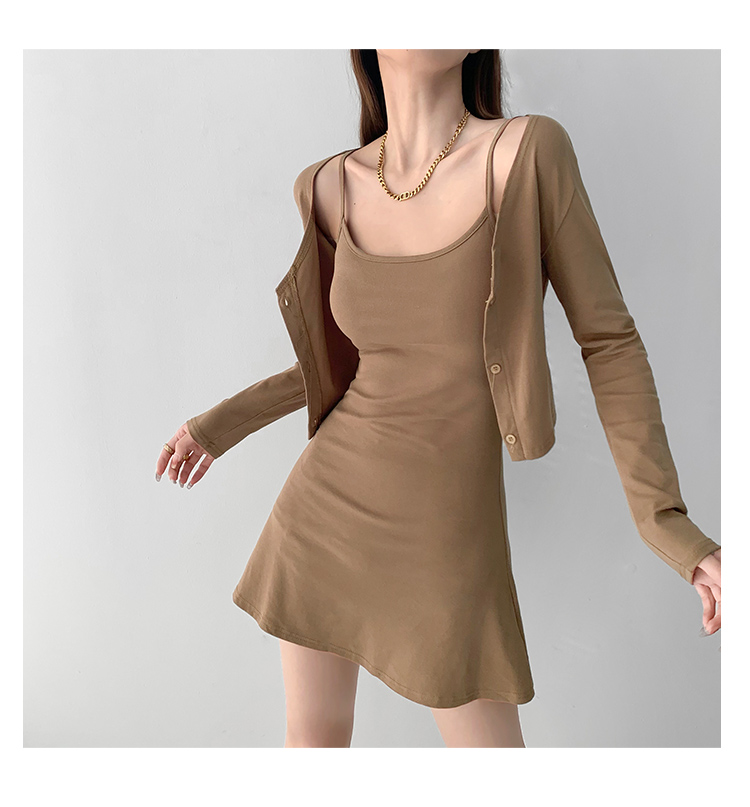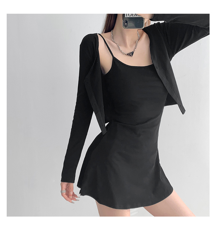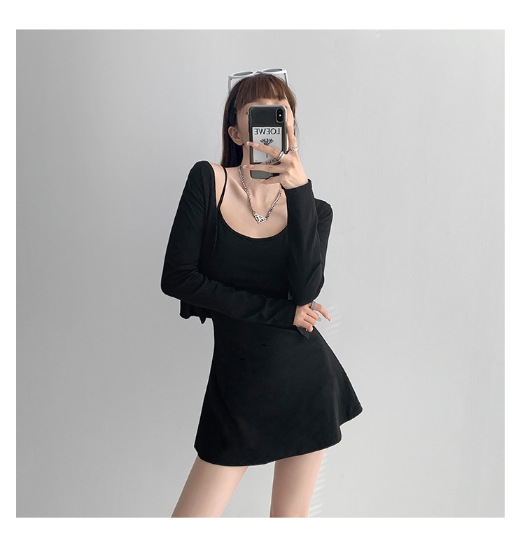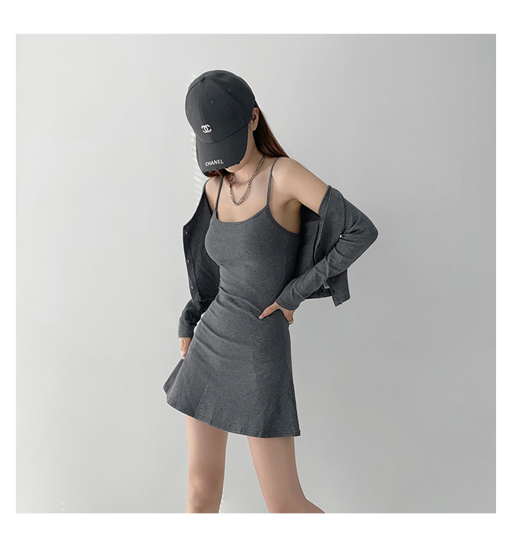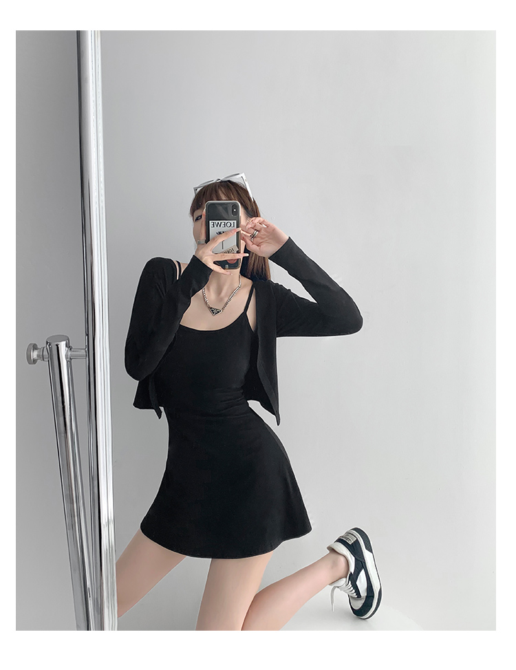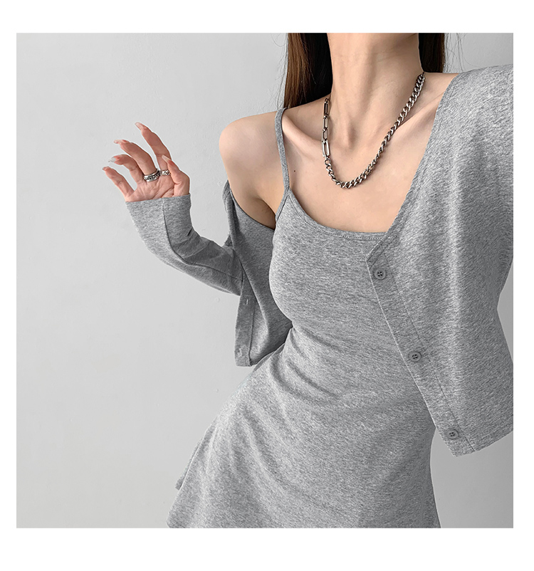 歐美性感修身短款魚尾吊帶連衣裙外搭長袖針織坎肩開衫兩件套女春