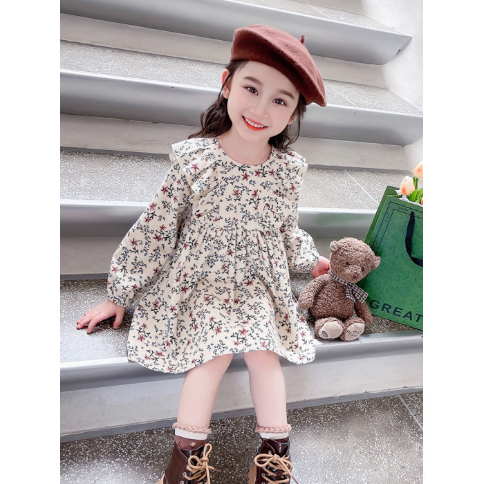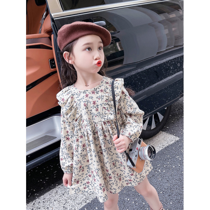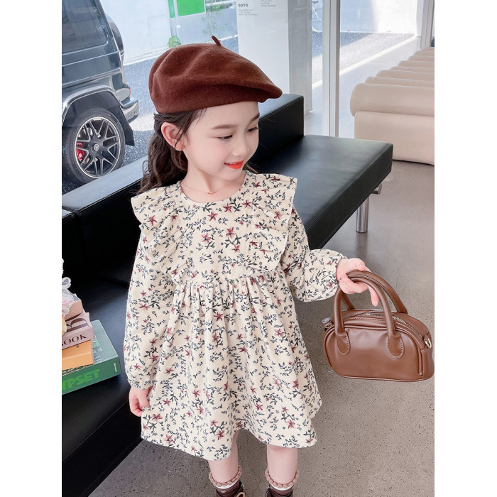 2023女孩裝秋裝新款碎花裙韓版長袖連衣裙女寶寶洋氣秋季公主裙子