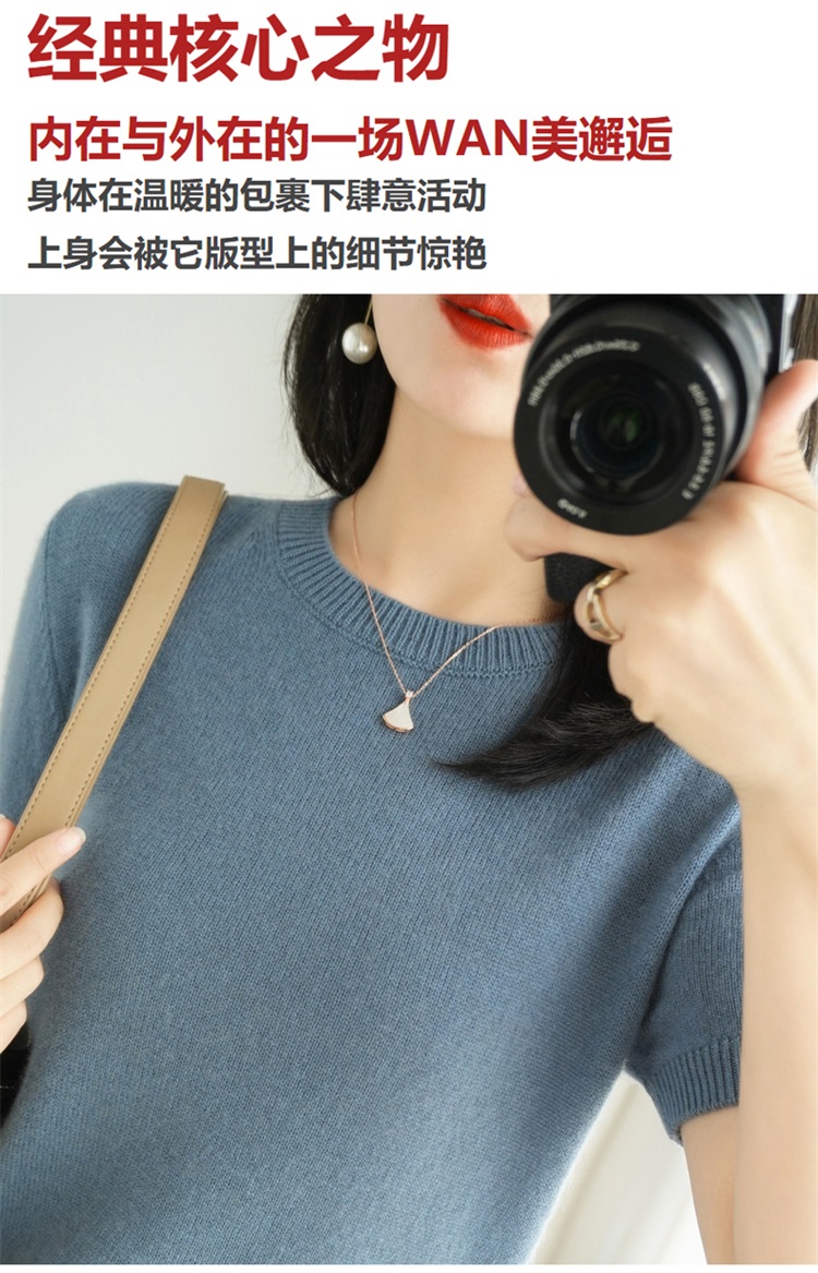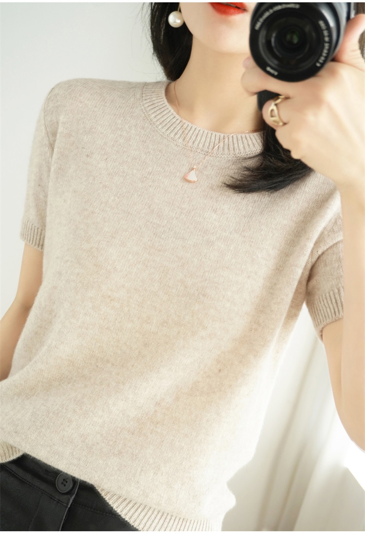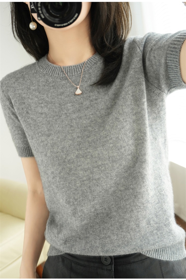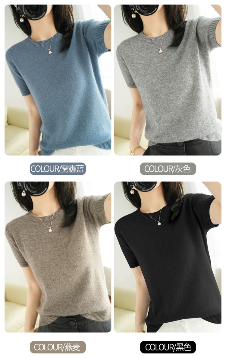 薄款羊毛針織短袖t恤女24夏季新款圓領寬松短款羊絨半袖上衣外穿