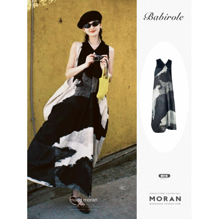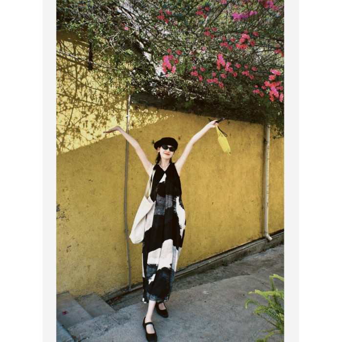 新中式水墨畫印花背心連衣裙女夏季松弛感設計小衆休閒寬松長裙子