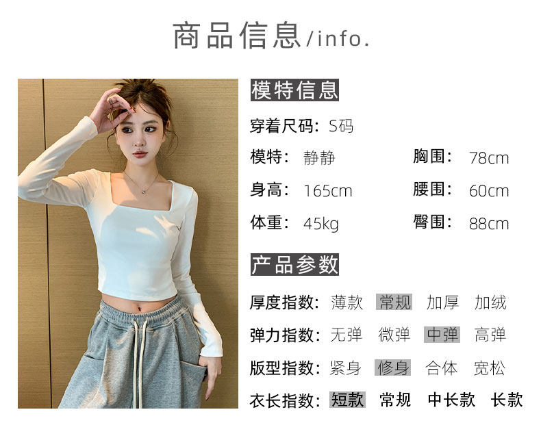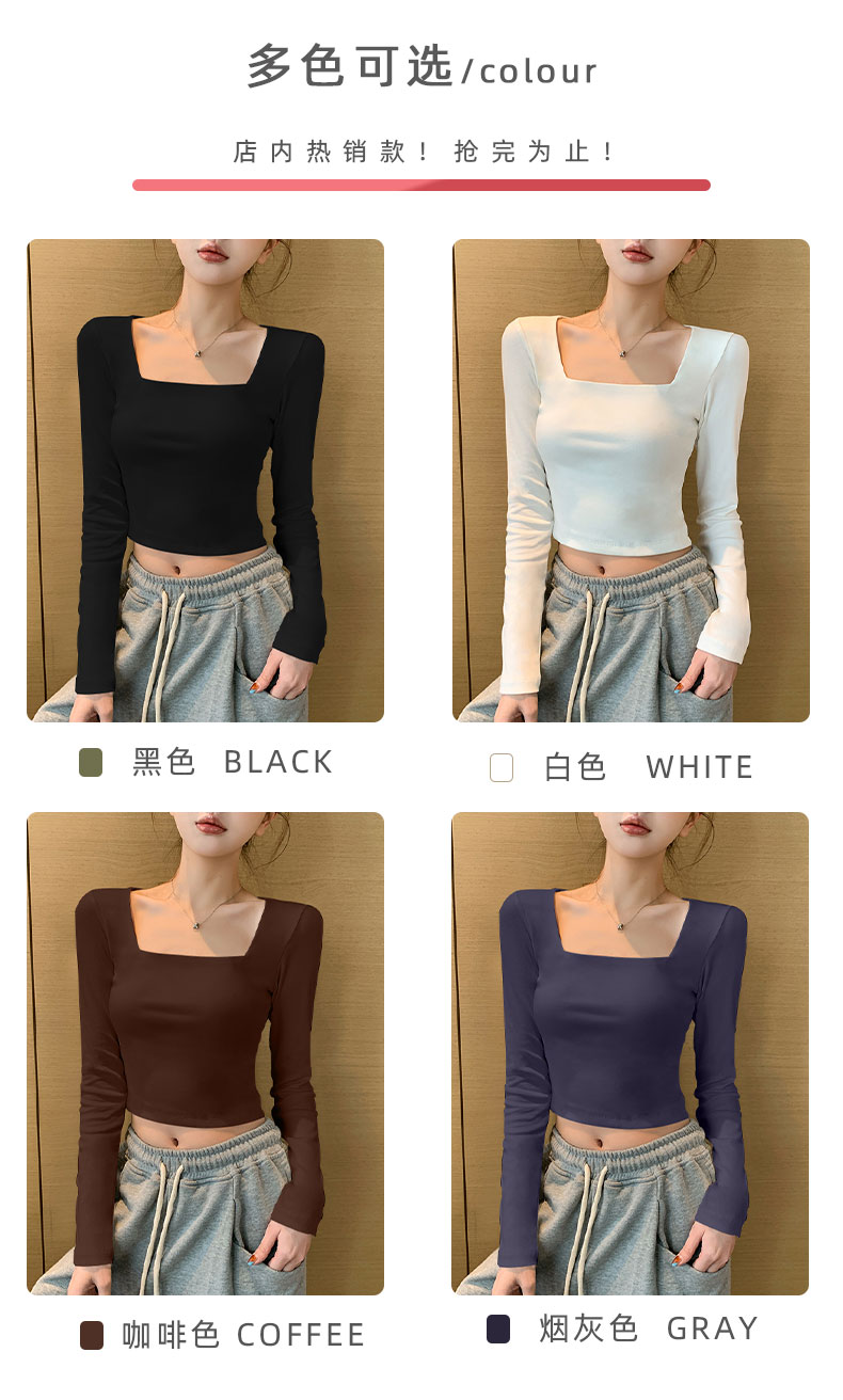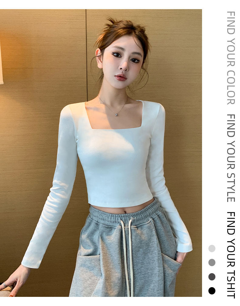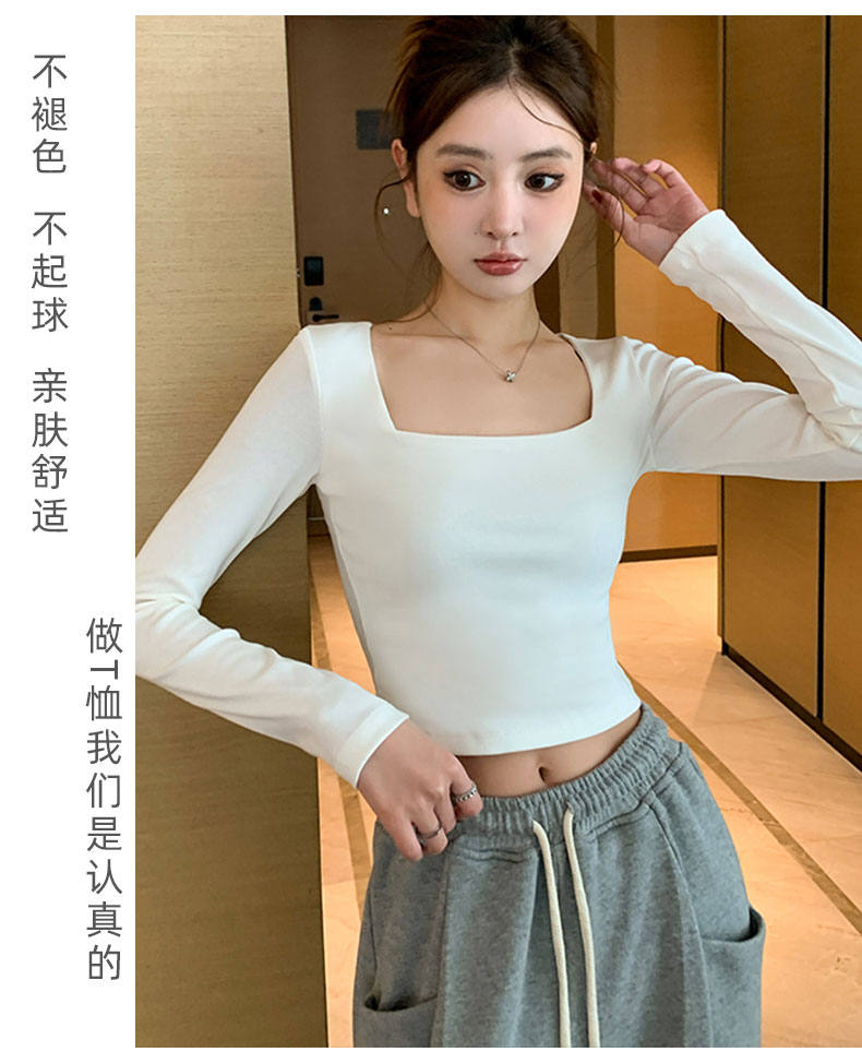 白色方領打底衫女內搭純棉2025春夏短款長袖t恤顯瘦緊身洋氣上衣