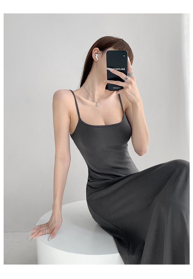 悠然假期/顯瘦好穿顯身材細肩吊帶裙女春秋純欲卡戴珊同款連衣裙
