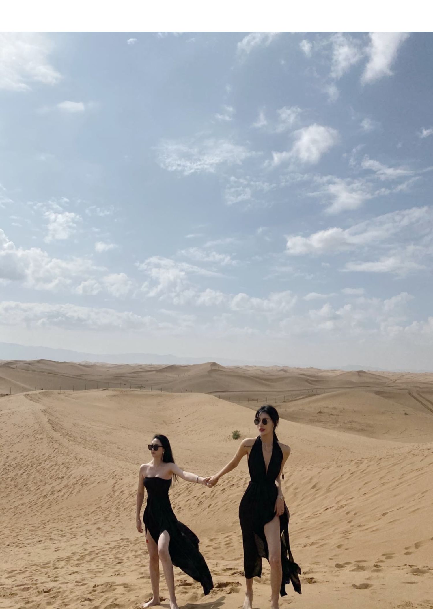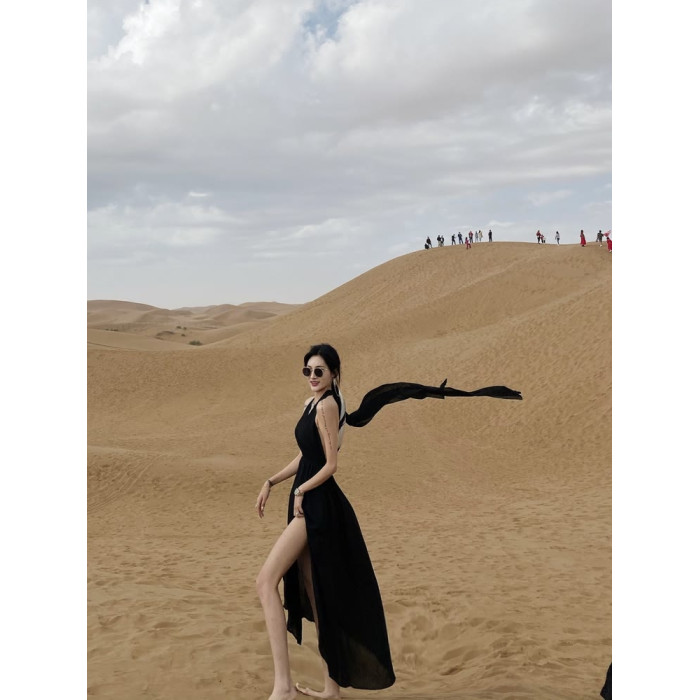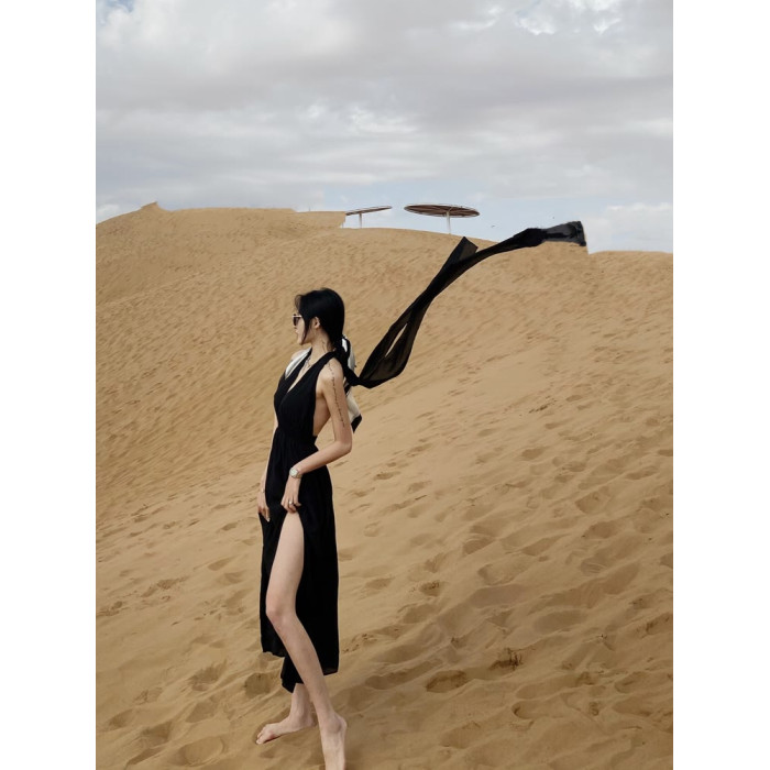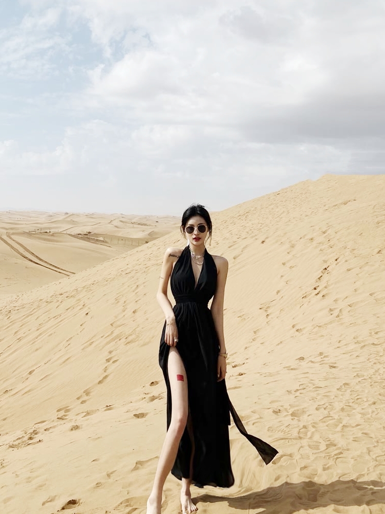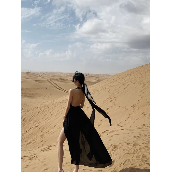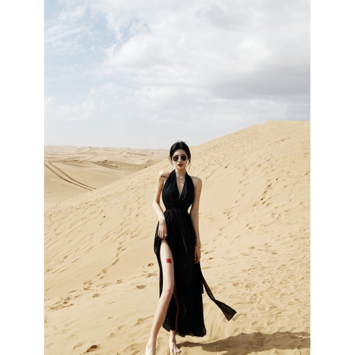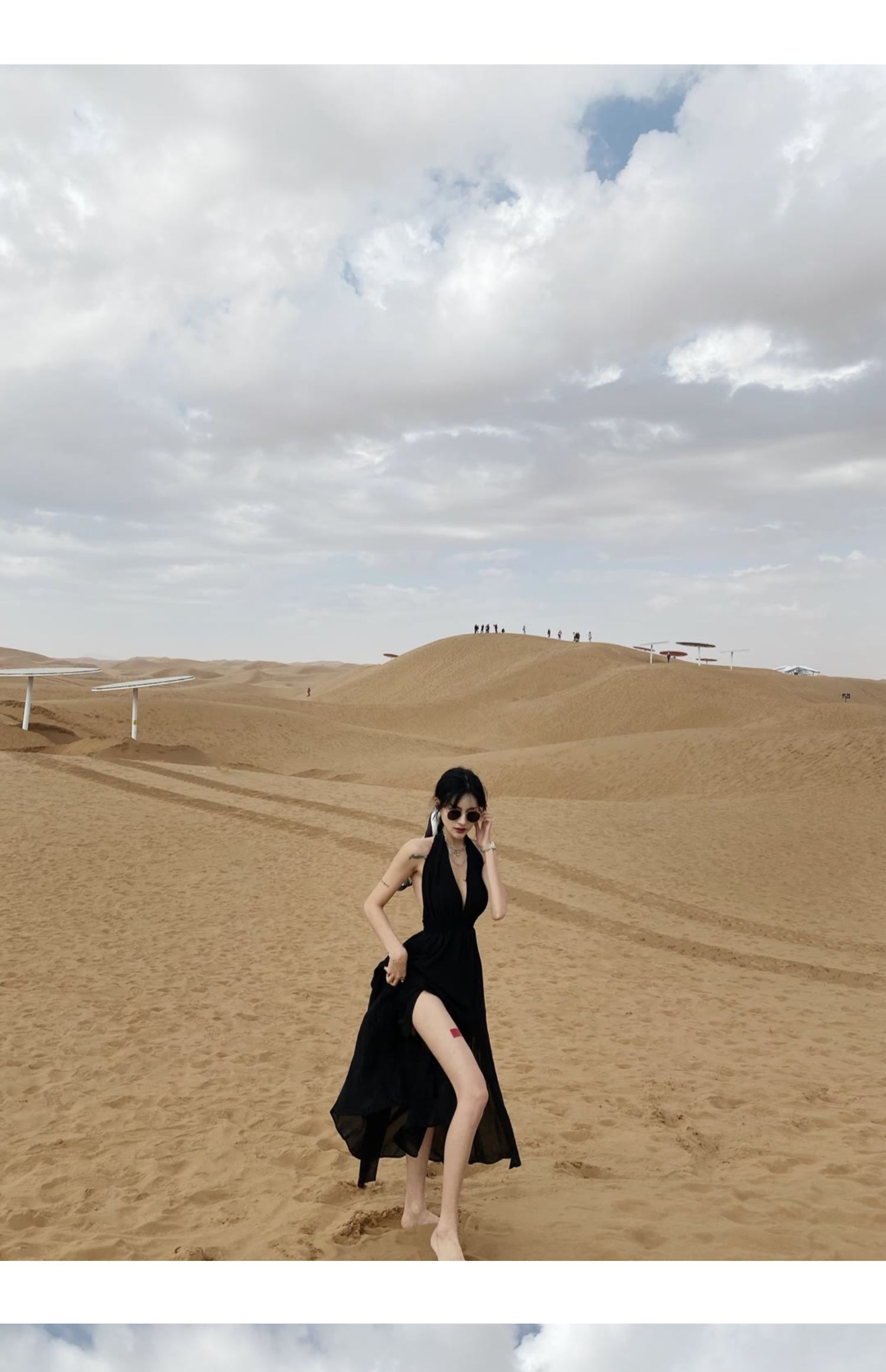 沙漠度假裙拍照好看的黑色旅遊裙子海邊連衣裙夏季沙灘裙女超仙