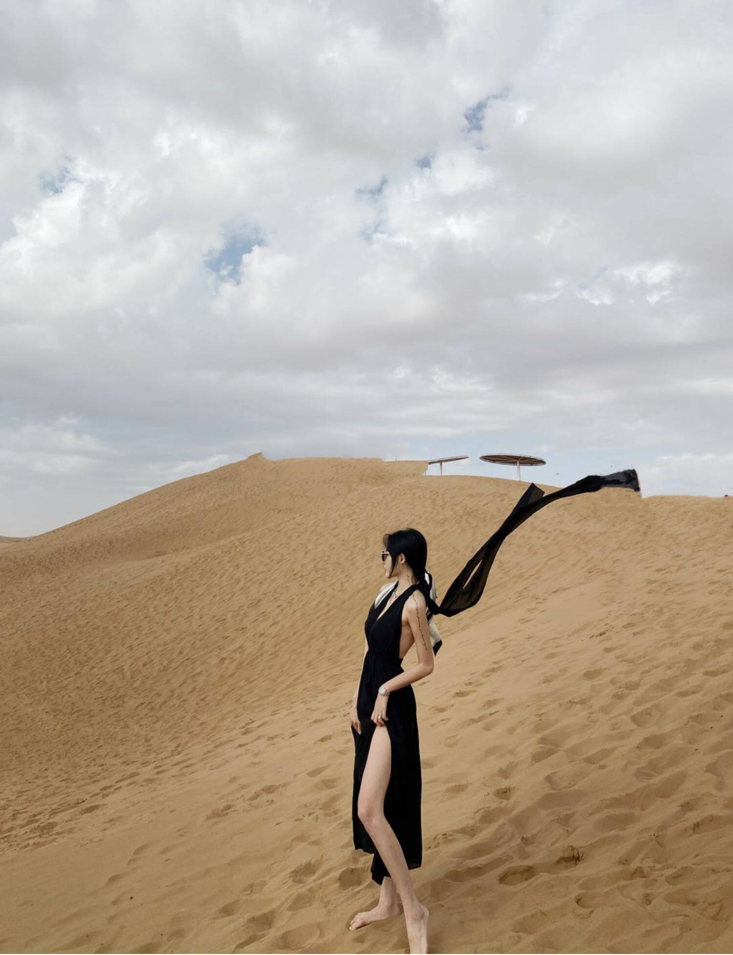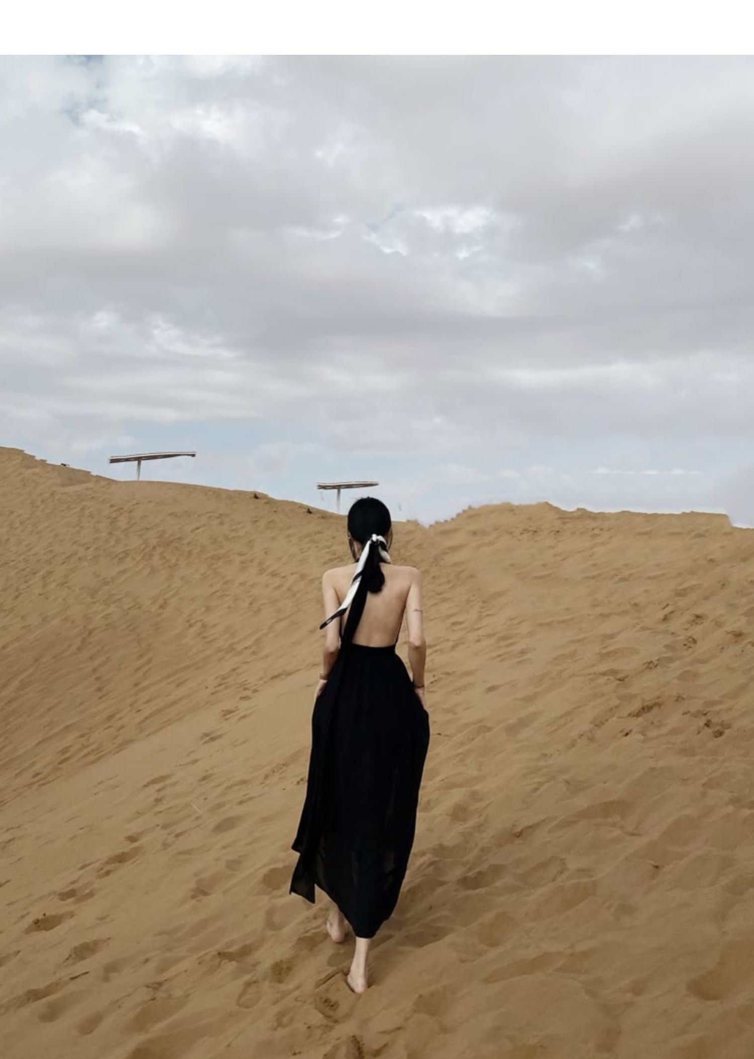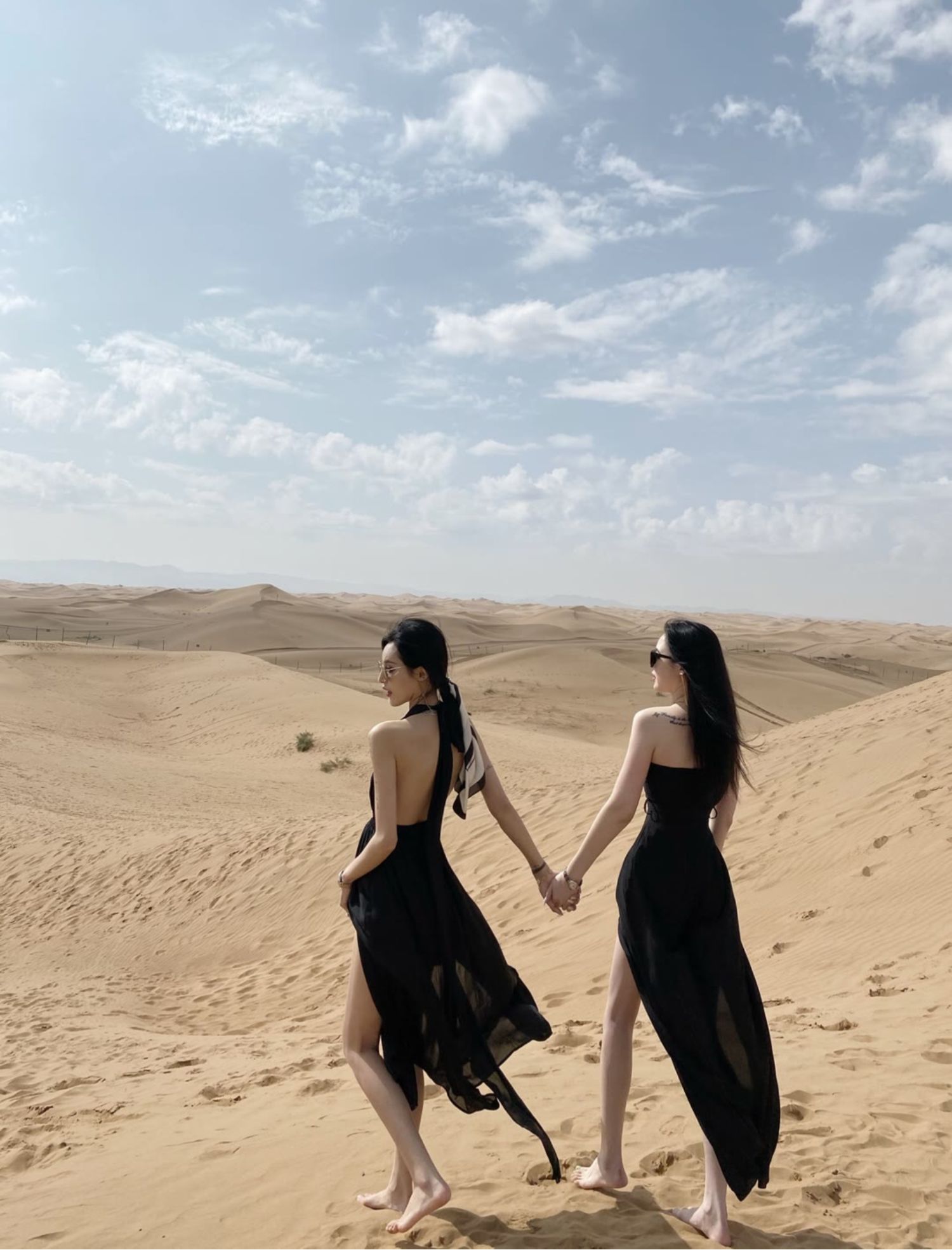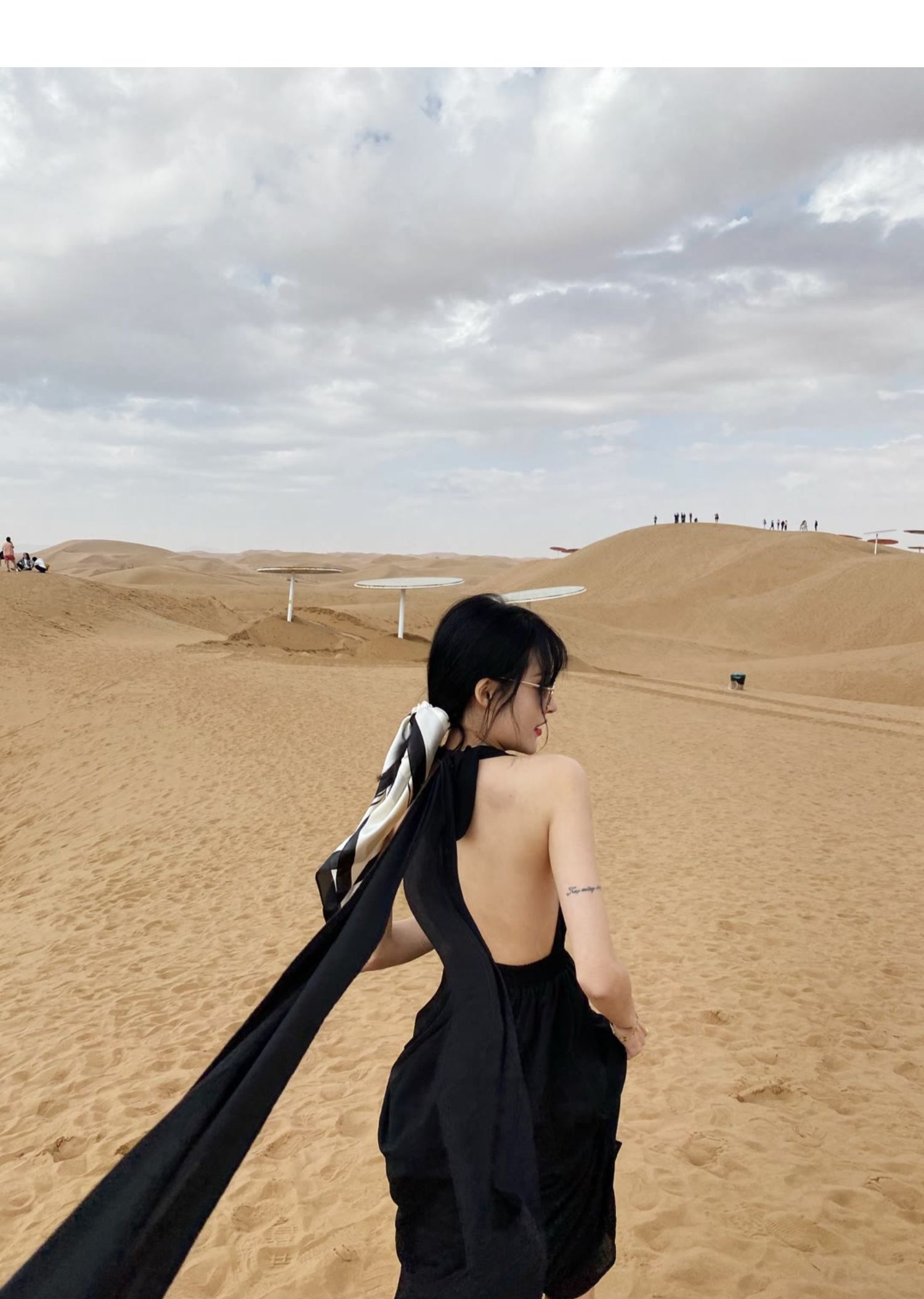沙漠度假裙拍照好看的黑色旅遊裙子海邊連衣裙夏季沙灘裙女超仙