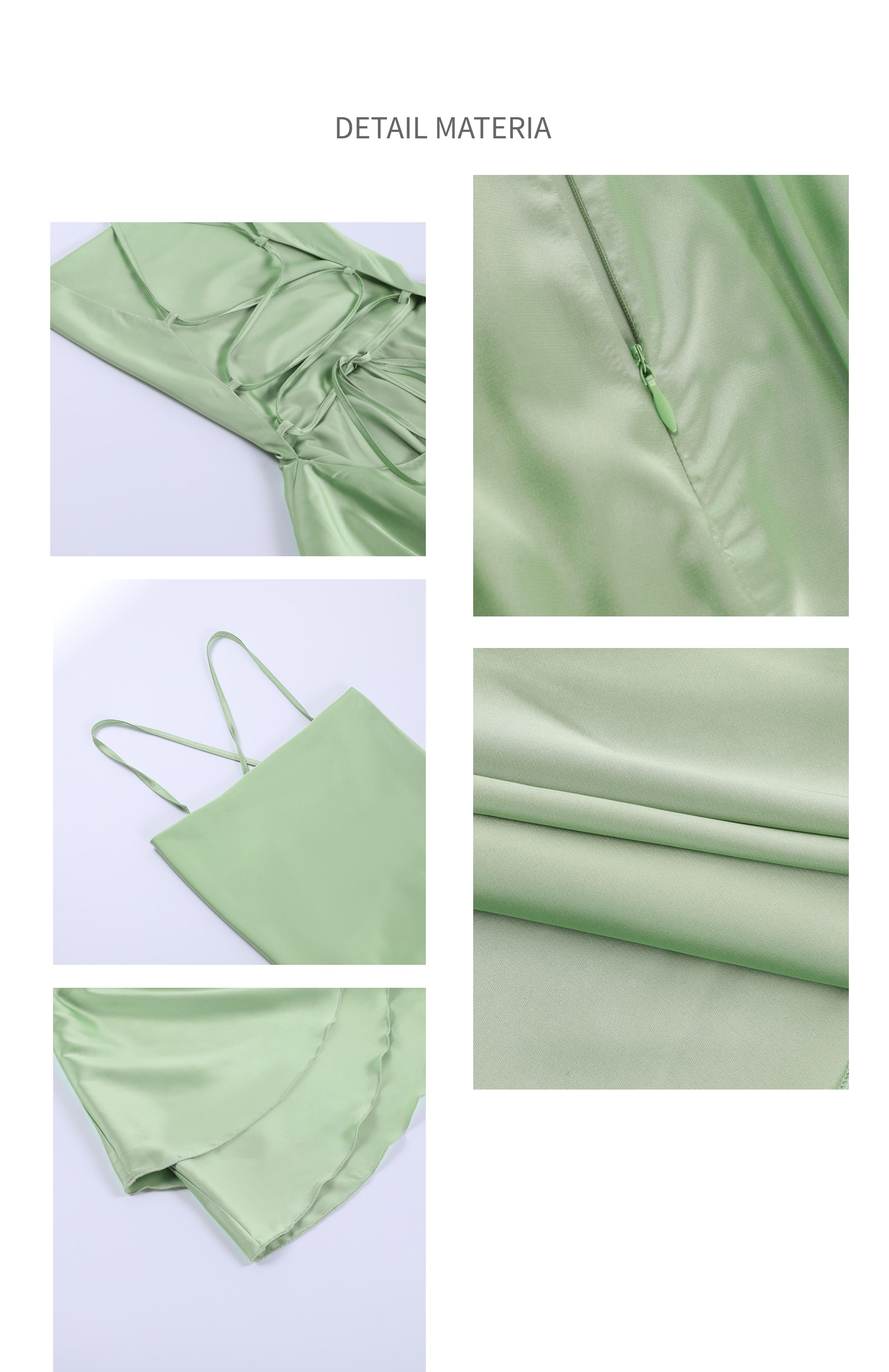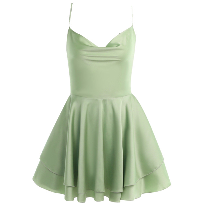 性感氣質露背綁帶連衣裙緞面高級感雙層下擺收腰顯瘦吊帶短裙女潮