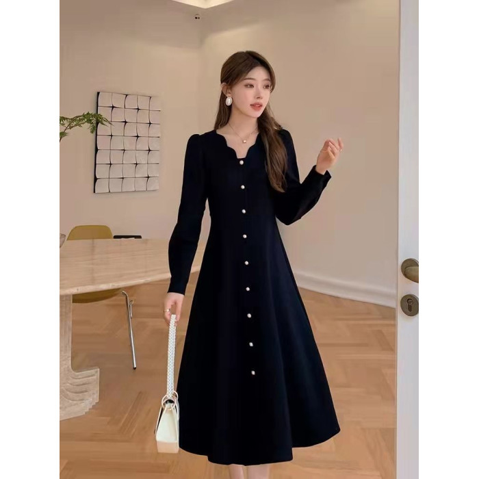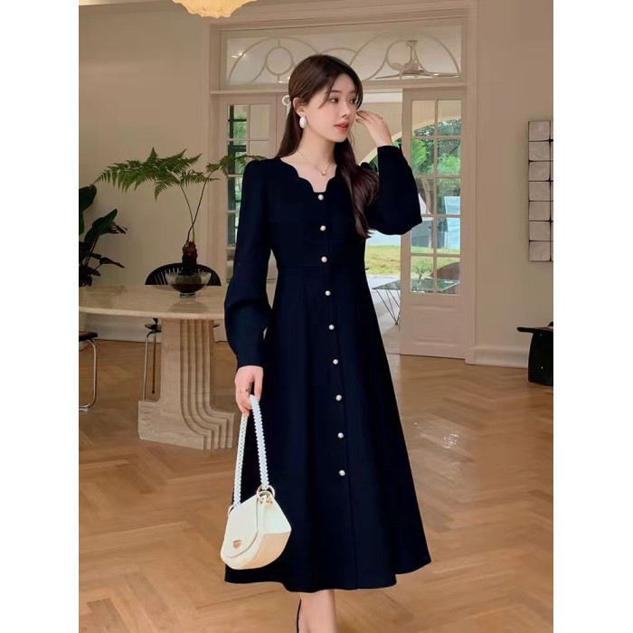 春秋冬季中長款連衣裙女氣質遮肚子減齡大碼胖妹妹女裝300斤裙子