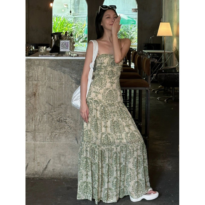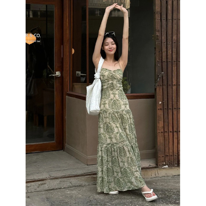 茶歇法式海邊度假吊帶連衣裙女夏季超仙甜美氣質感高級感沙灘長裙