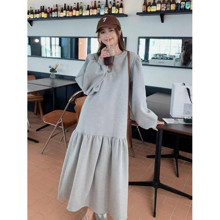 長款過膝衛衣連衣裙女2025春季新款胖mm寬松簡約魚尾減齡a字裙子