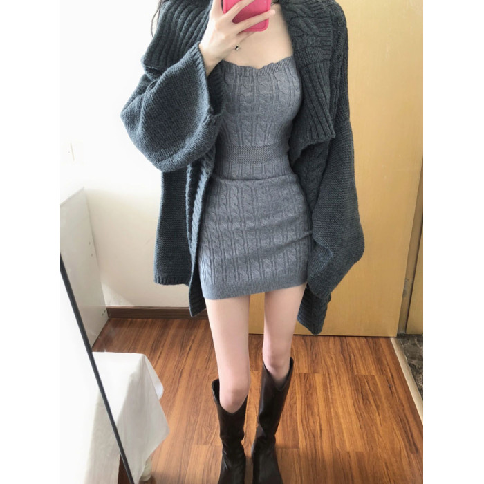 秋冬季純欲辣妹無袖針織吊帶短裙修身緊身顯瘦包臀內搭連衣裙子女