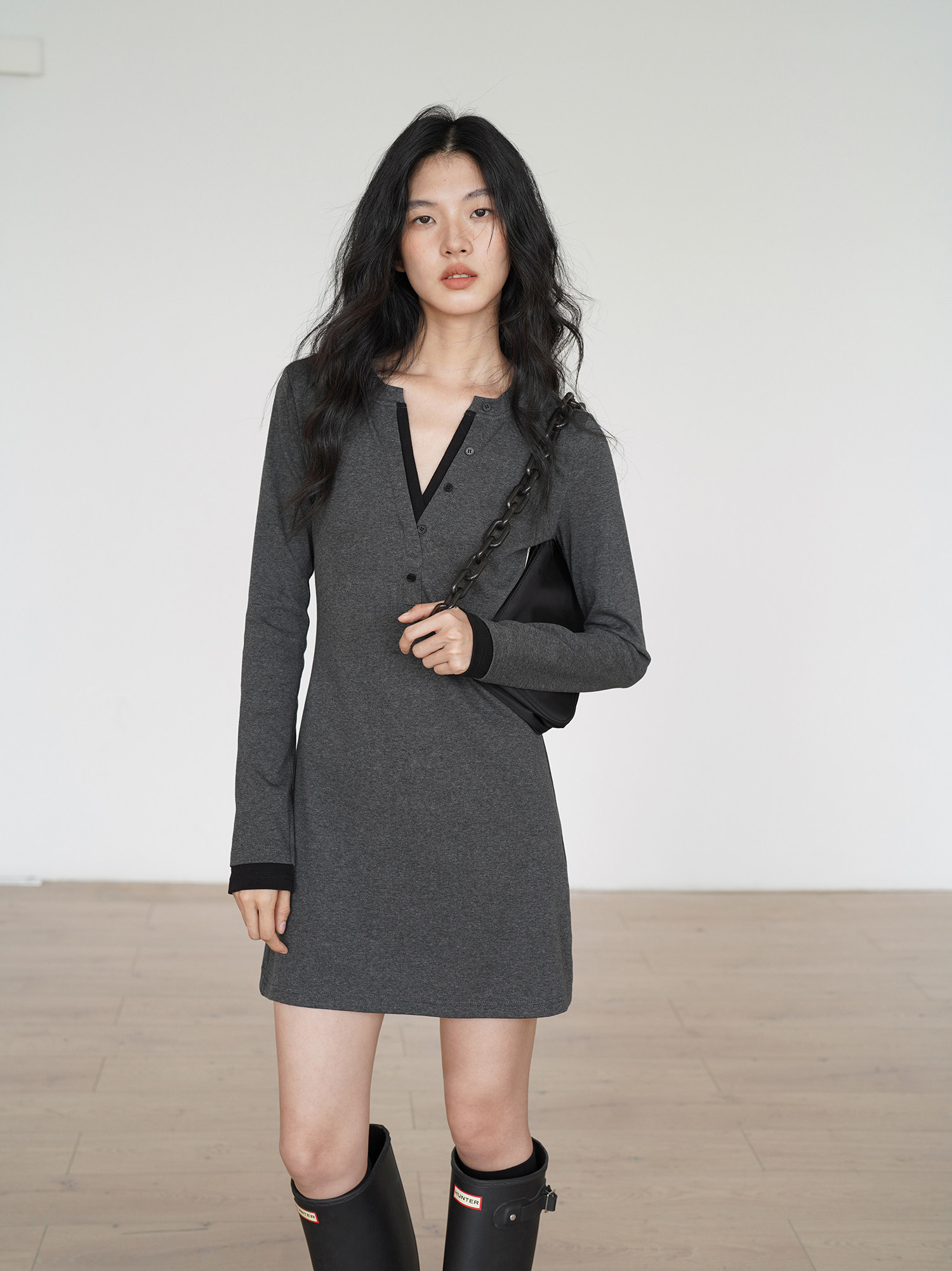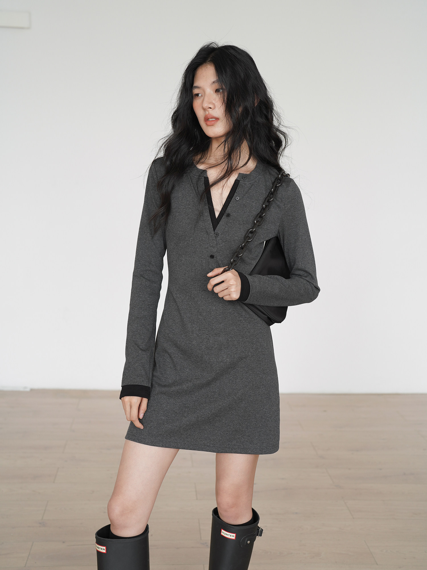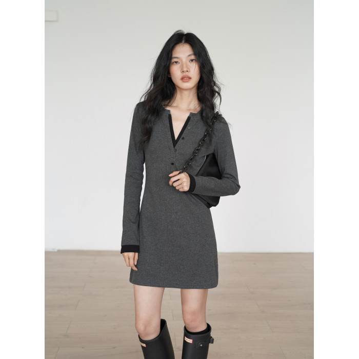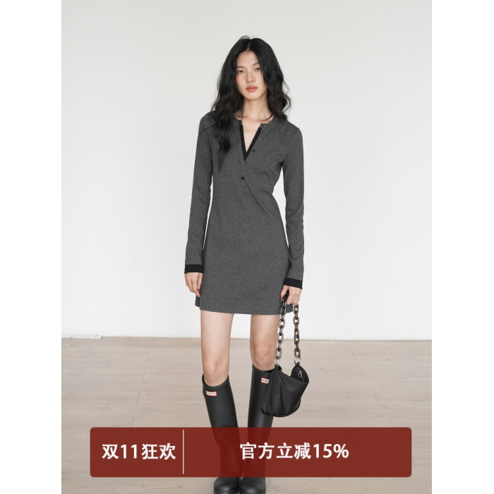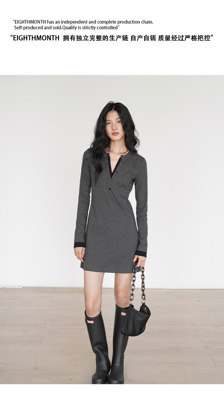 EIGHTHMONTH 氣質T恤連衣裙2025年早秋新款長袖拼接收腰顯瘦裙子