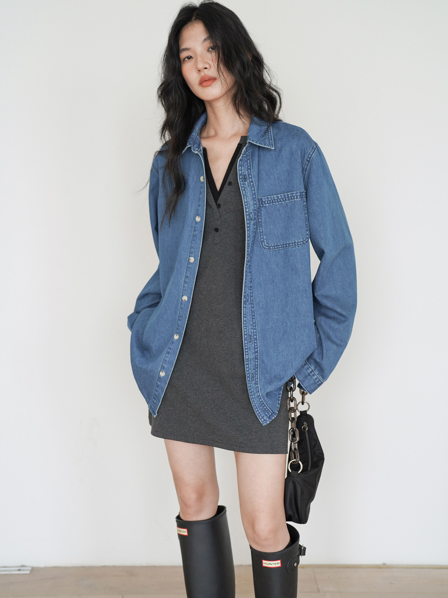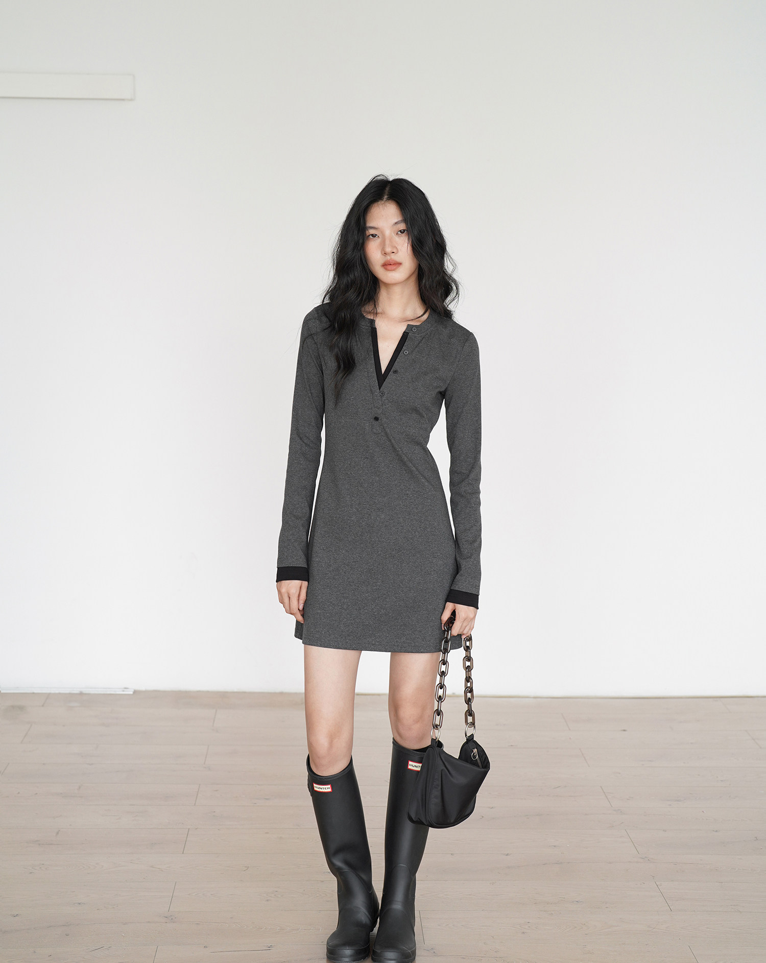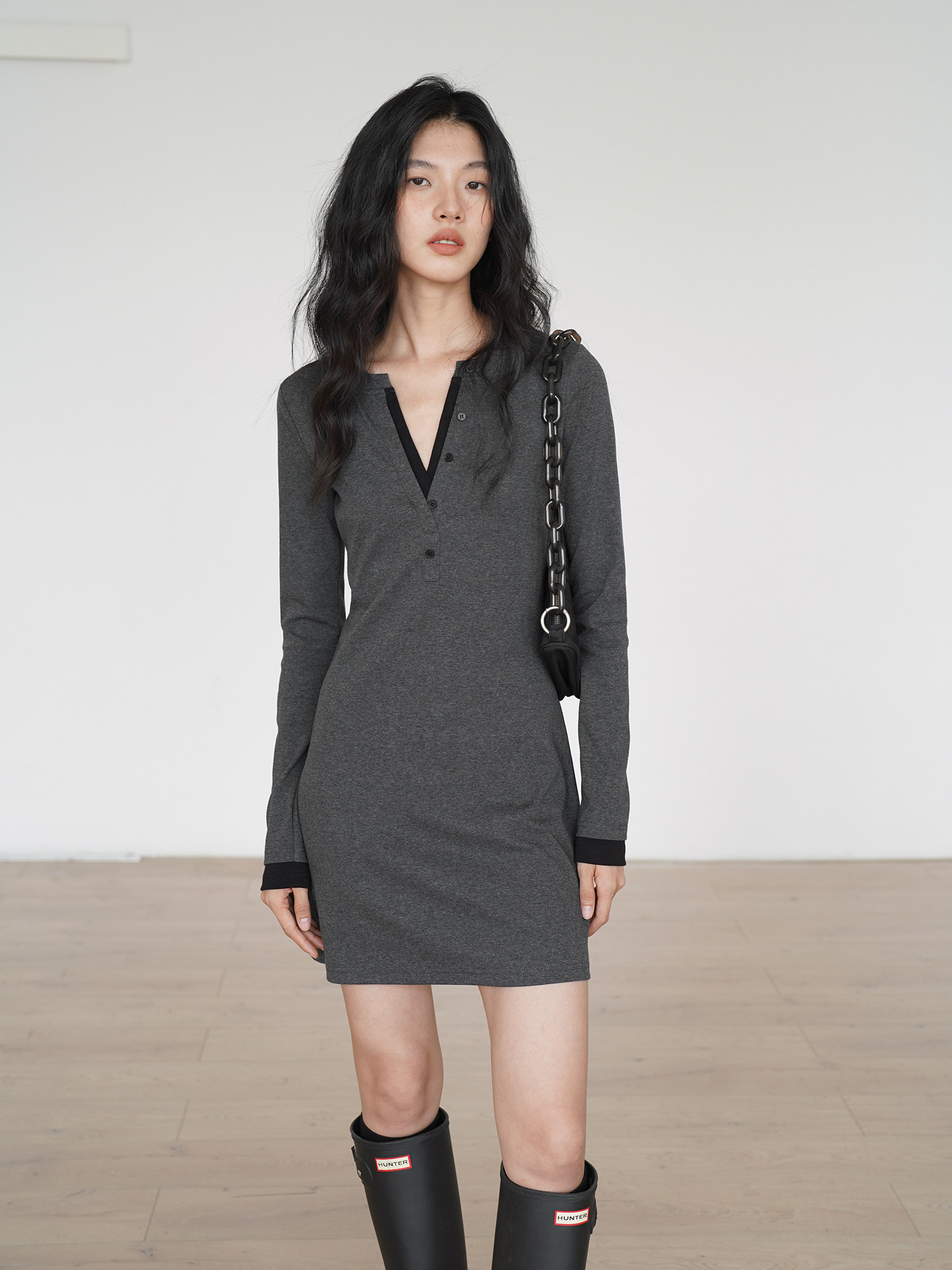 EIGHTHMONTH 氣質T恤連衣裙2025年早秋新款長袖拼接收腰顯瘦裙子