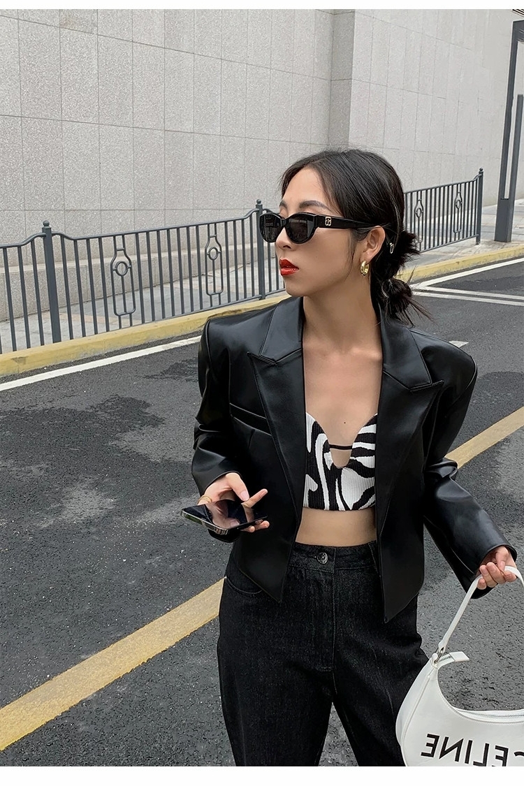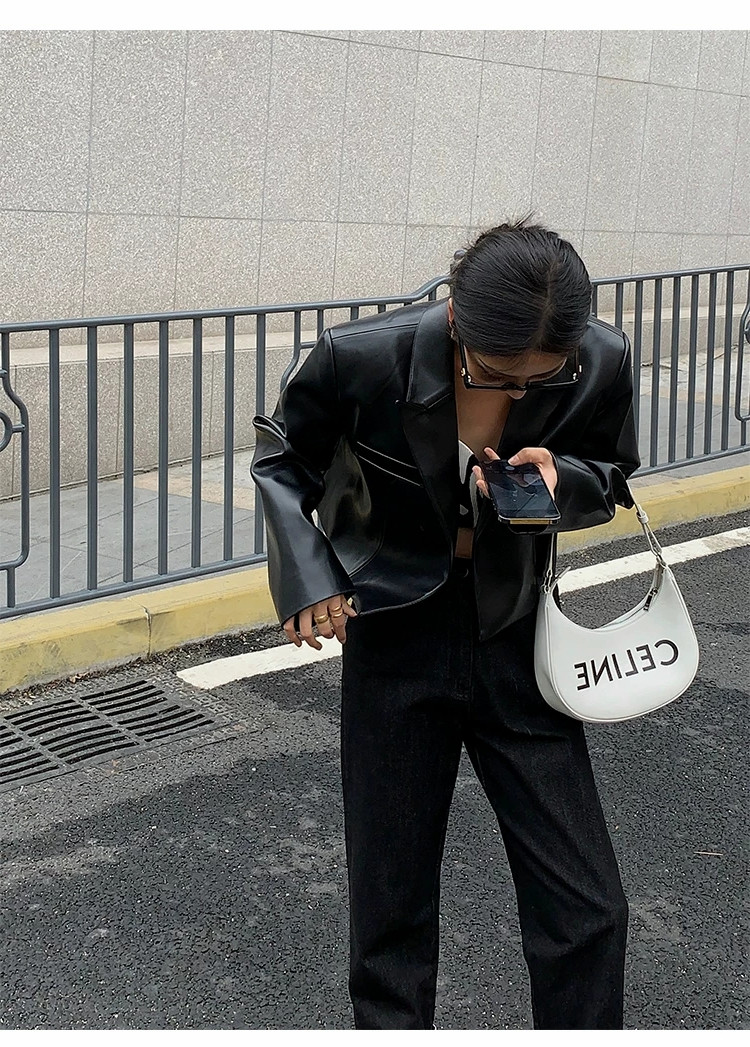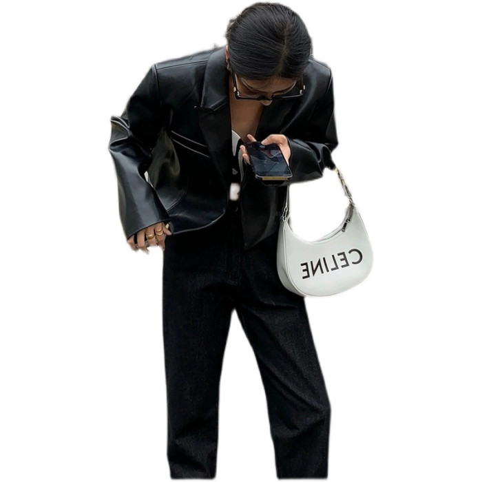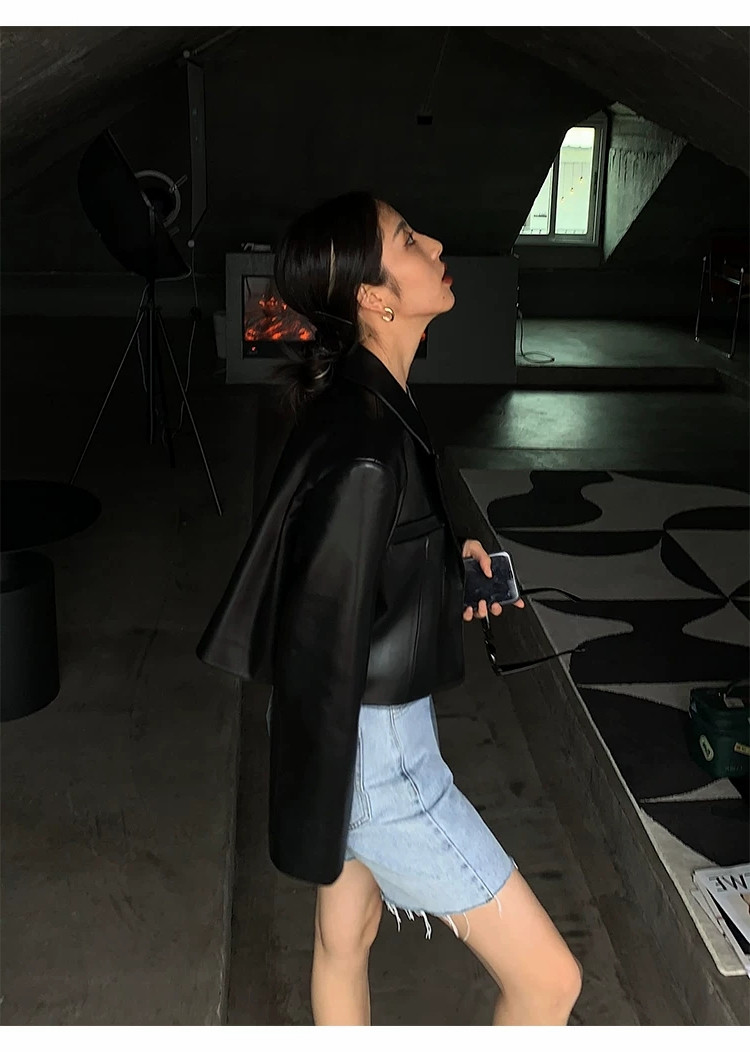 2025年春秋新款黑色短款高腰小皮衣外套女炸街高級設計感時尚夾克