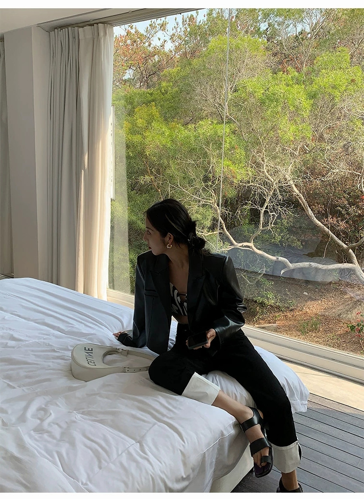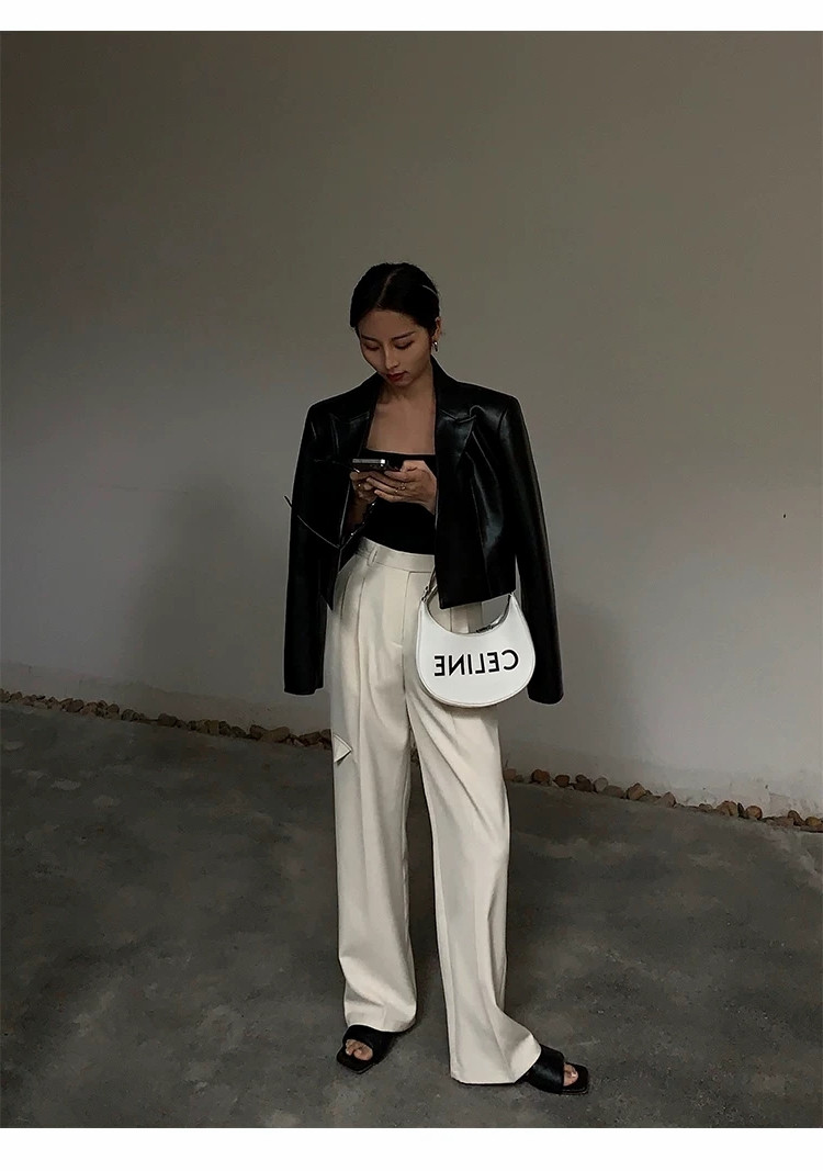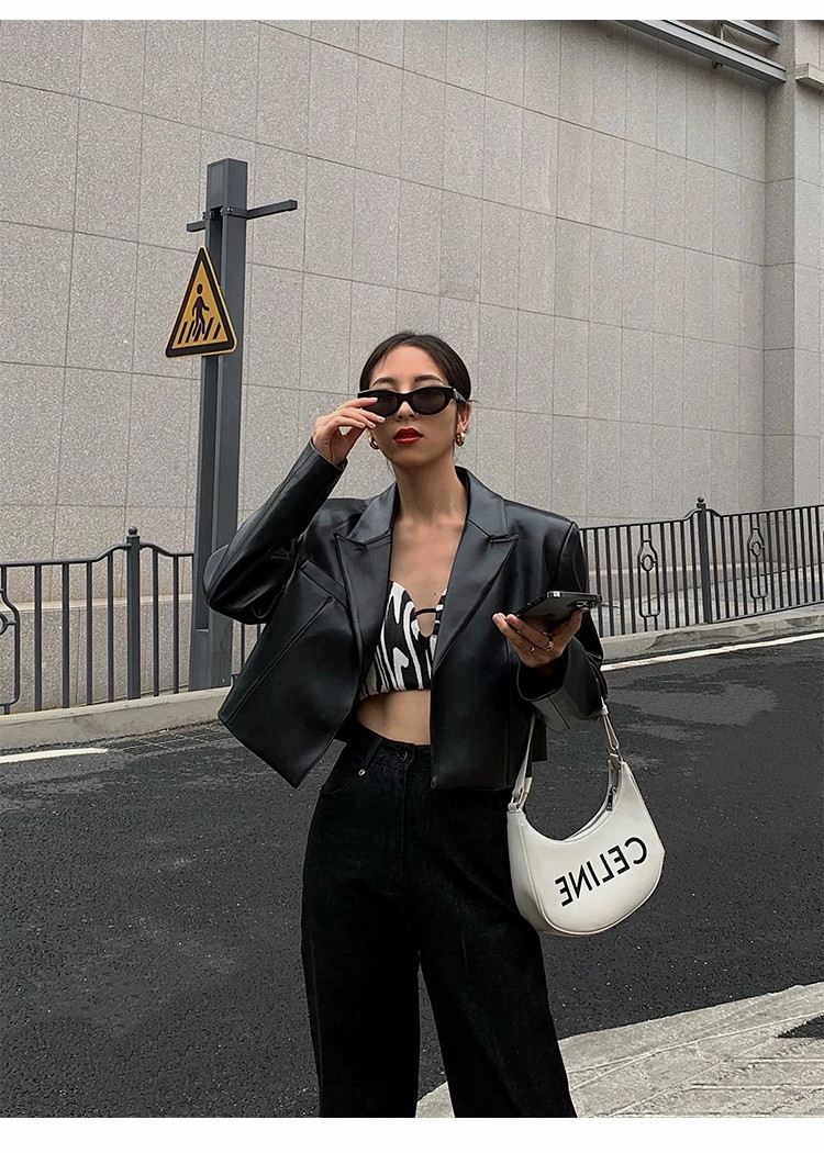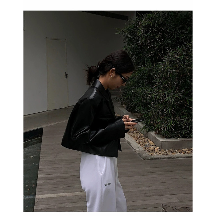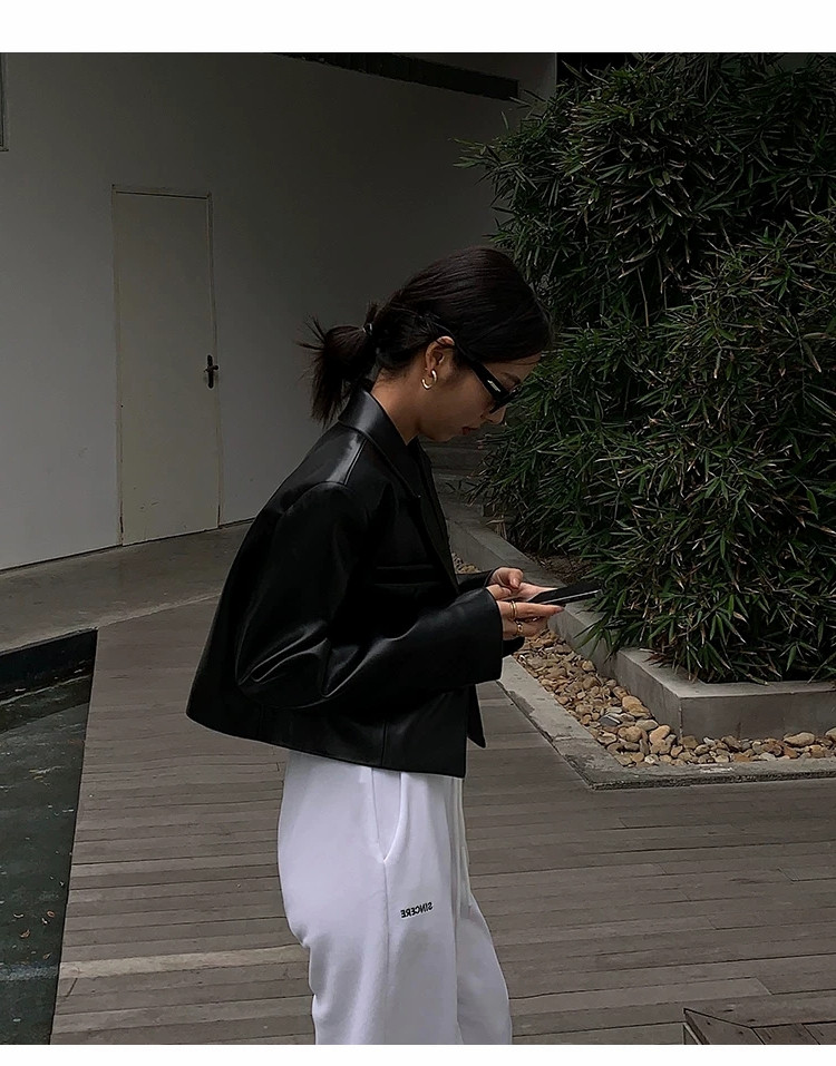 2025年春秋新款黑色短款高腰小皮衣外套女炸街高級設計感時尚夾克