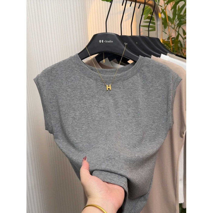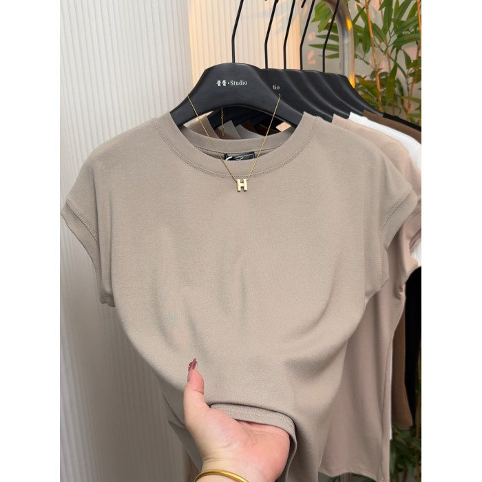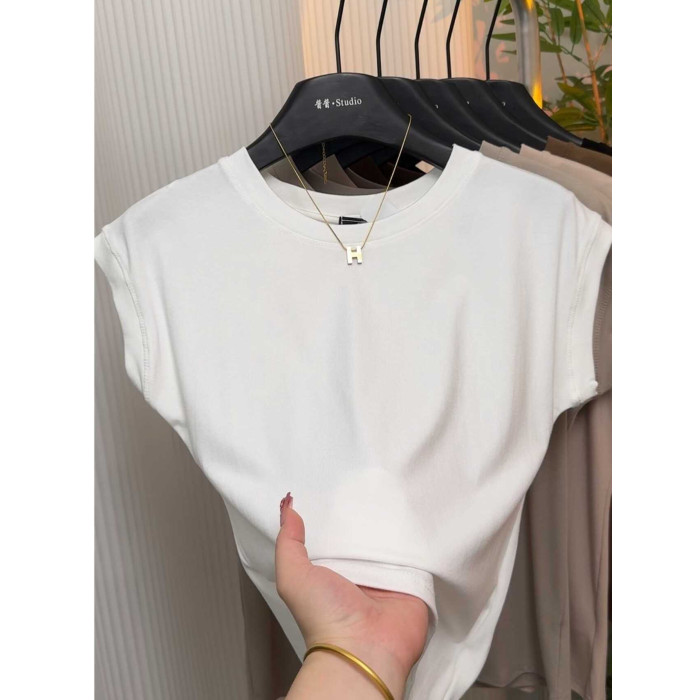 高級感小飛袖坎肩爆款短袖女夏季洋氣減齡圓領設計感純色t恤上衣