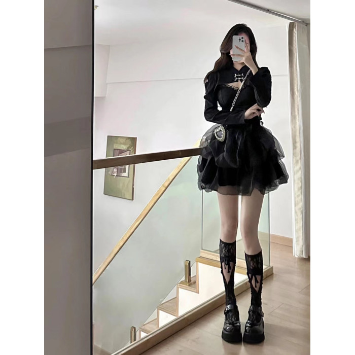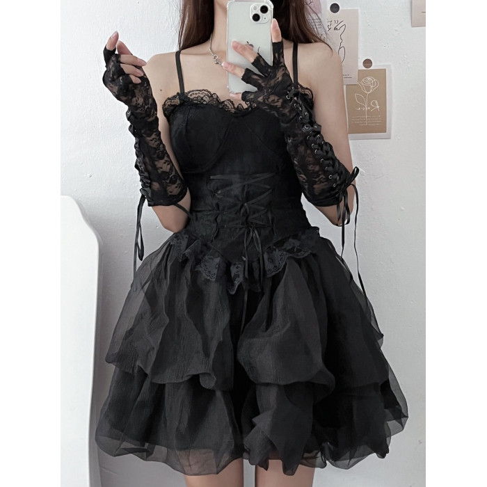 暗黑性感辣妹吊帶上衣帶胸墊收腰公主蓬蓬裙生日短裙萬聖節服裝