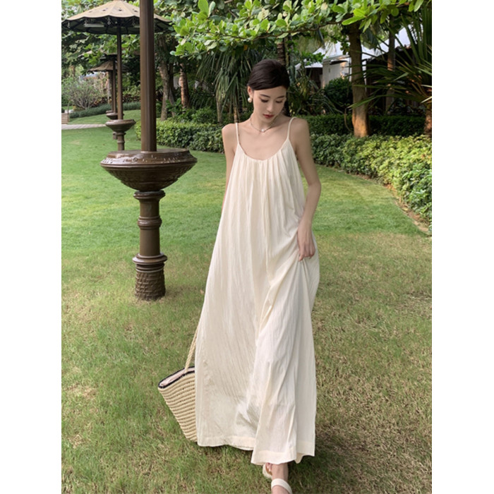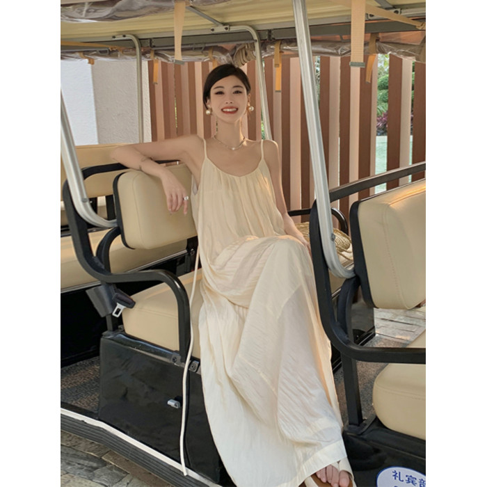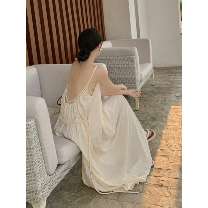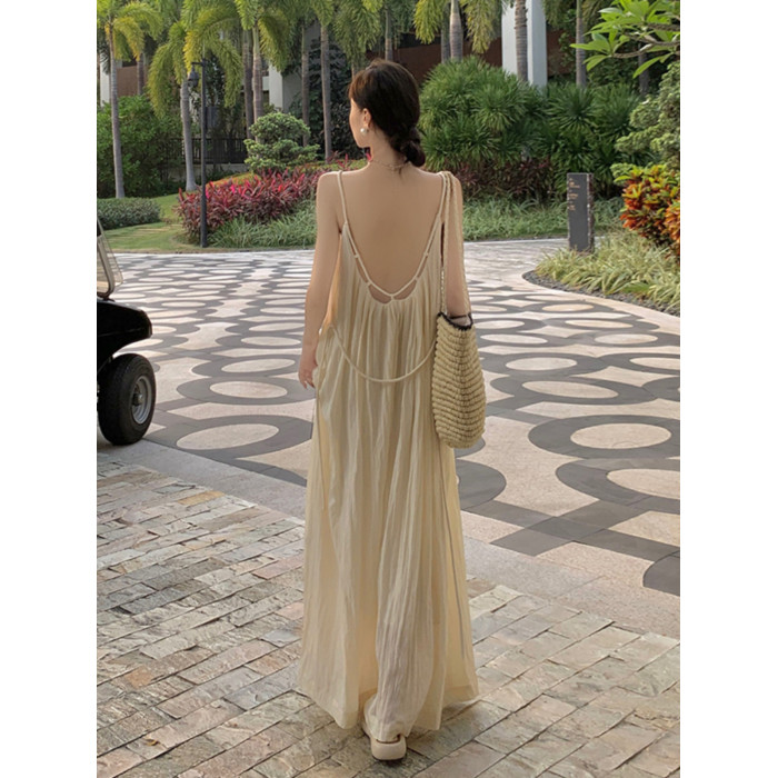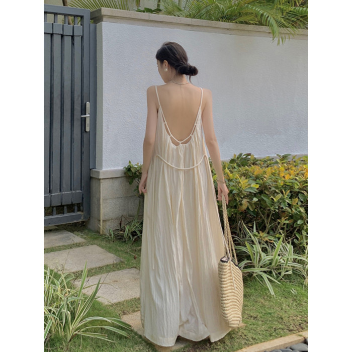 海邊拍照衣服超仙沙灘裙吊帶露背連衣裙氛圍感顯瘦寬松度假風裙子