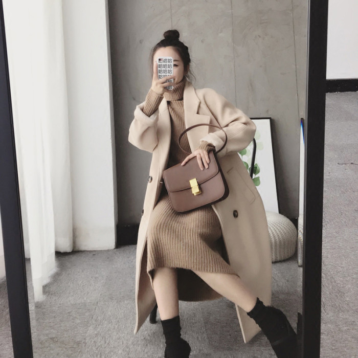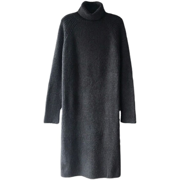 加厚加絨過膝針織毛衣女寬松高領保暖連衣裙輕奢氣質冬季長款內搭