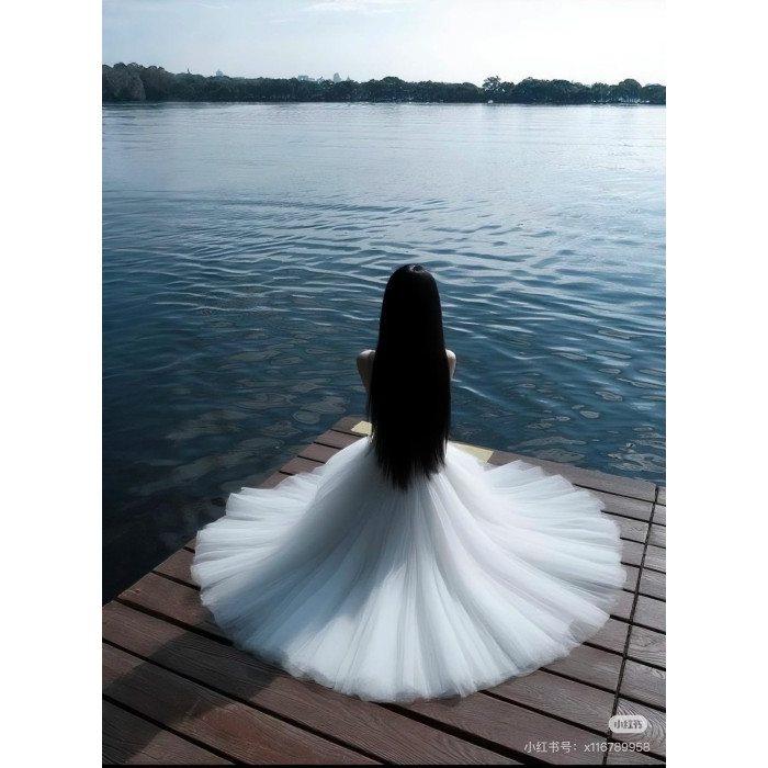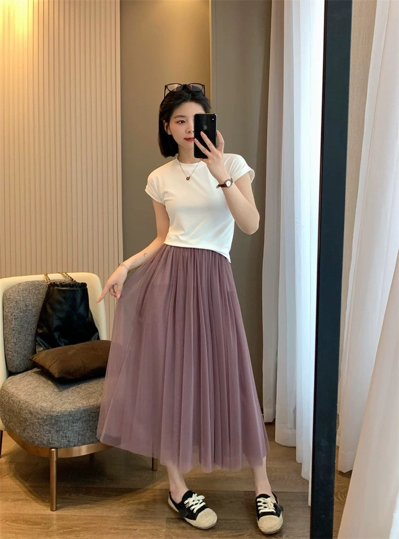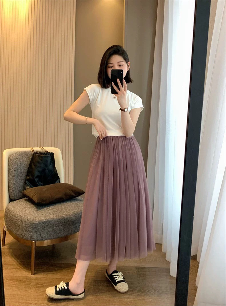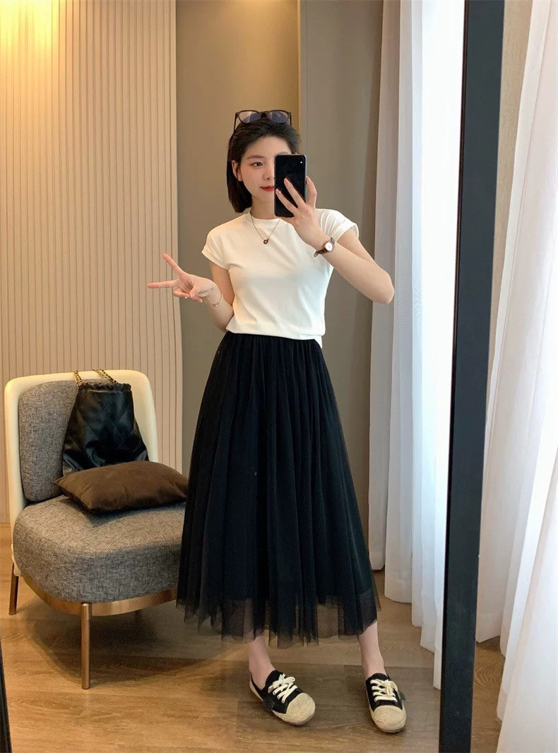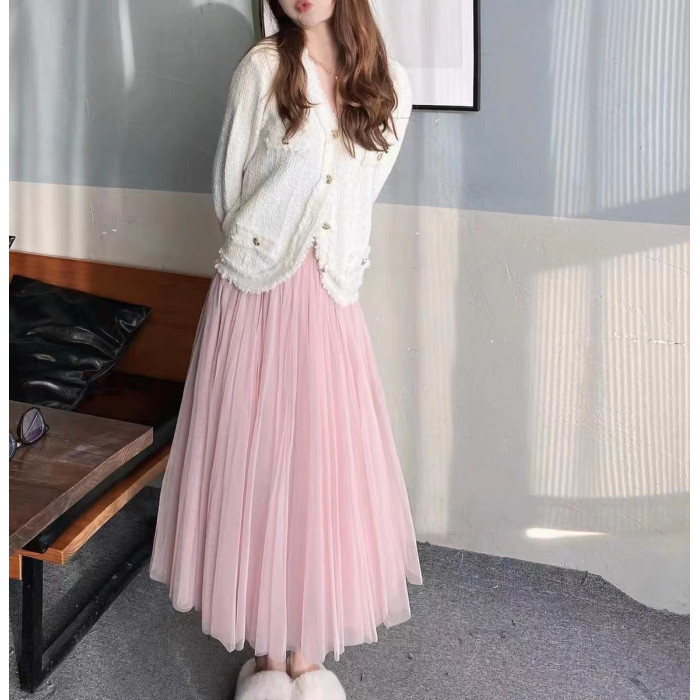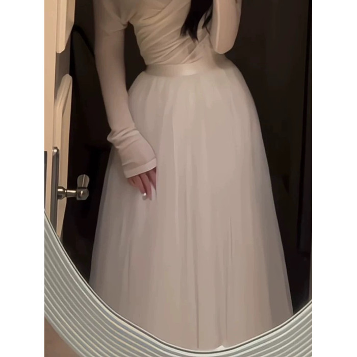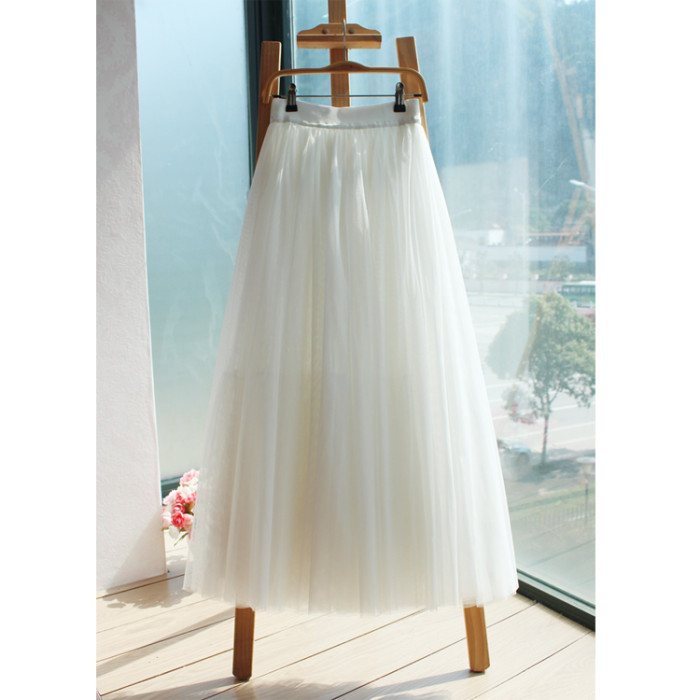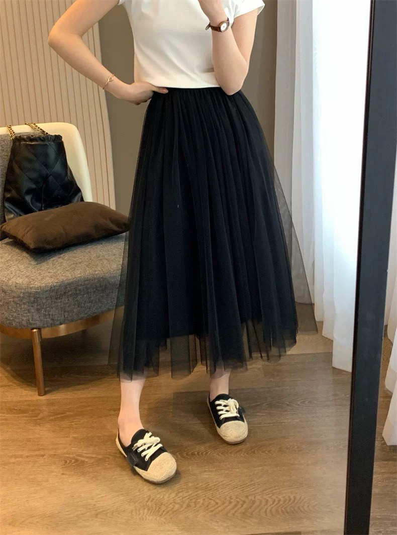 時尚潮品秋冬新款明星同款李多海純色長紗裙A字大擺網紗蓬蓬裙