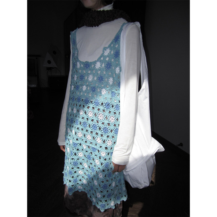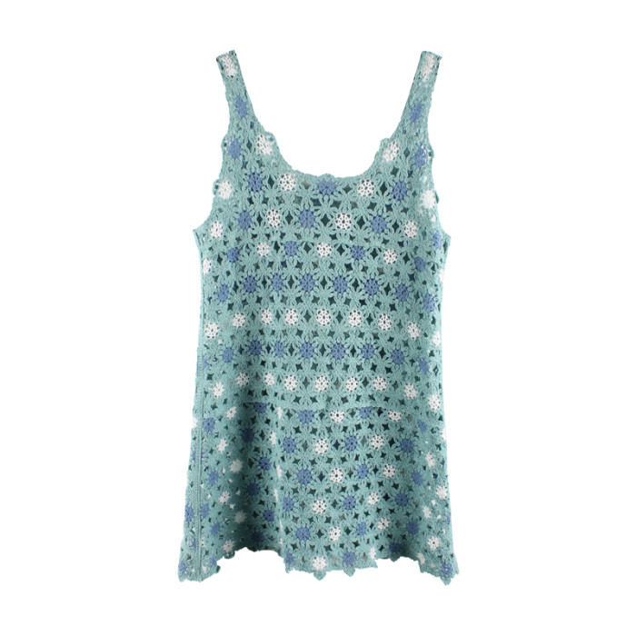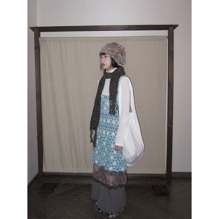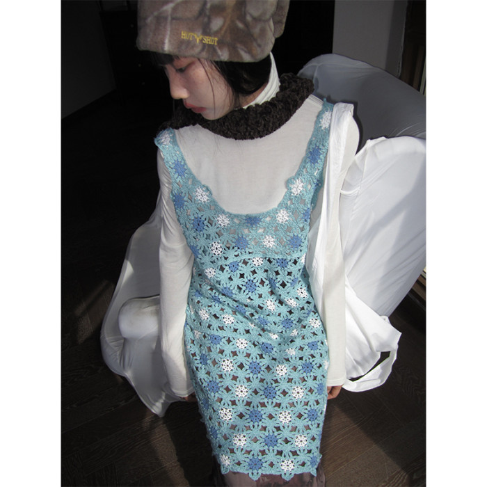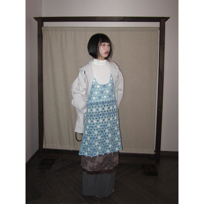 3months 小衆復古手工鉤花吊帶背心中長款連衣裙女曡穿外搭罩衫女
