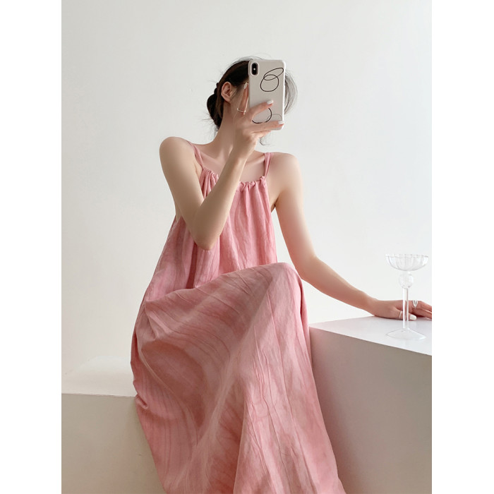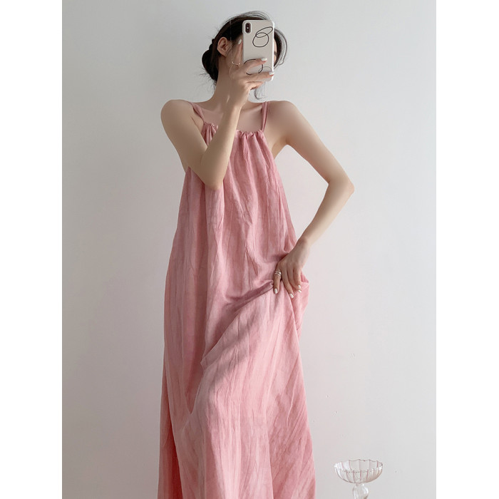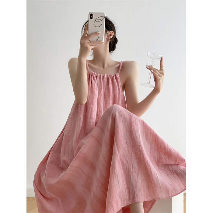 雲南慵懶粉色連衣裙多巴胺女夏泰國海邊拍照絕美度假吊帶裙高級感